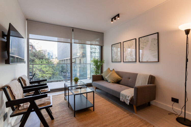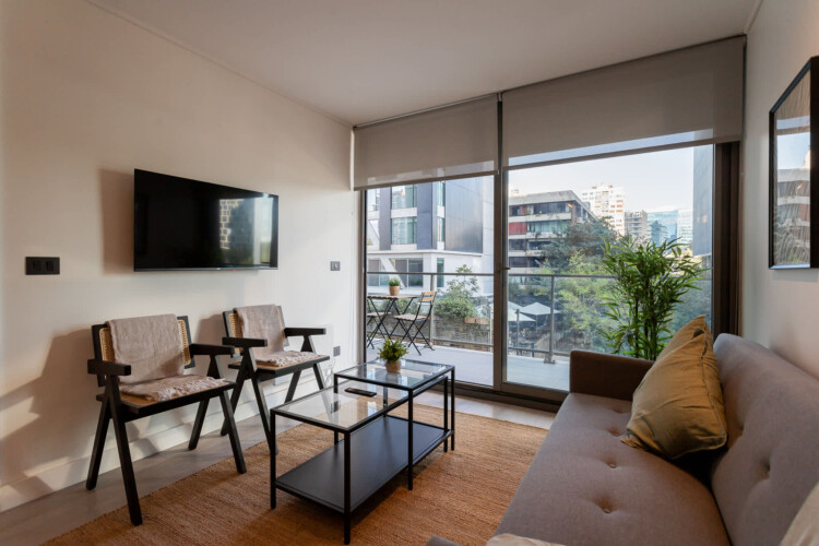 Your stylish Santiago sanctuary awaits in the sought-after Las Condes area. This beautifully appointed one-bedroom apartment features a modern design that seamlessly blends comfort and convenience. After a day of exploration, unwind in your private retreat.