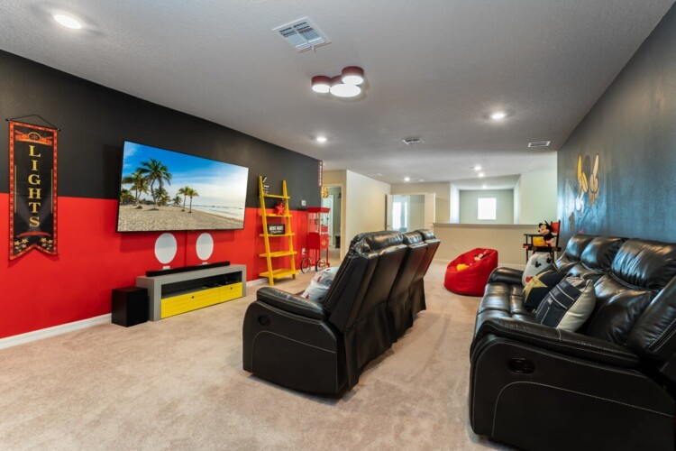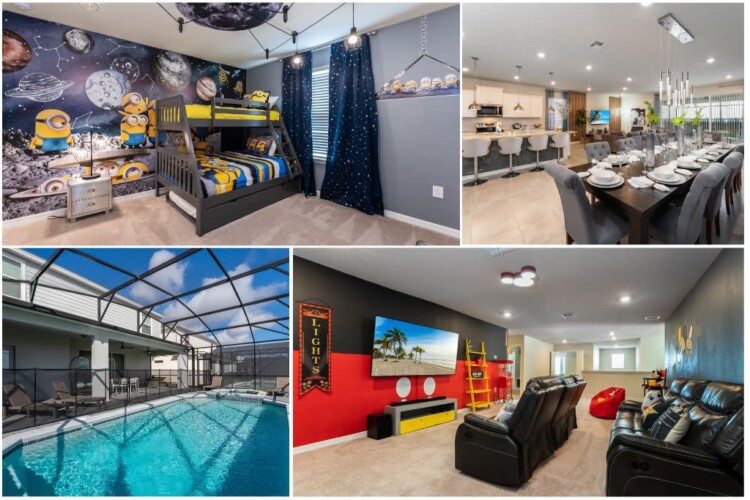 We’d love to host you at our brand new 8-bedroom home at Windsor Island Resort by Disney! This home has an amazing dΓ©cor and is located just minutes from Orlando’s major attractions. We will make sure you have the time of your life in this spectacular house. From our private pool to the game room, from the movie theater to the themed bedrooms, this house is guaranteed to build everlasting memories for you and your whole traveling party.