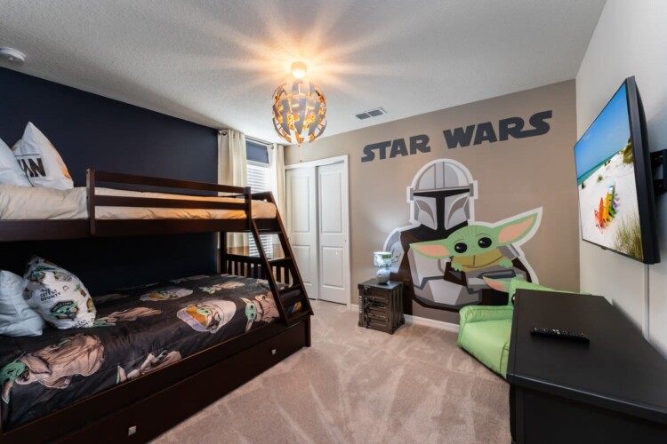Bedroom 7: Bunk bed (TWN over Full w/ trundle) – Mandalorian Room – 2nd Floor