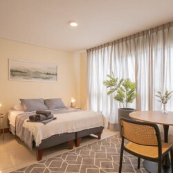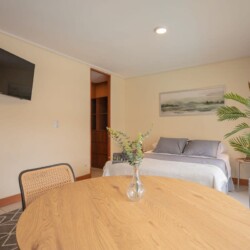 The apartment is fully furnished and equipped with everything you need to feel at home. The kitchen is equipped with a kettle, toaster, juicer, coffee maker, induction cooktop, refrigerator, microwave, and basic cooking utensils to make your meals or snacks at any time. Plus, if you’re traveling for work, don’t worry, we have a 500 Mbps Wi-Fi connection to ensure connectivity during your stay. The studio room has a double bed perfect for your stay, and we also provide linens and towels. We’re sure your stay in Santiago with Andes STR will be amazing, and to make it even more comfortable, you’ll have access to the laundry room and outdoor pool where you can enjoy a refreshing dip during the summer season. Additionally, to keep up with your exercise routine, the building has a gym. Book now and let us make your stay an unforgettable experience!