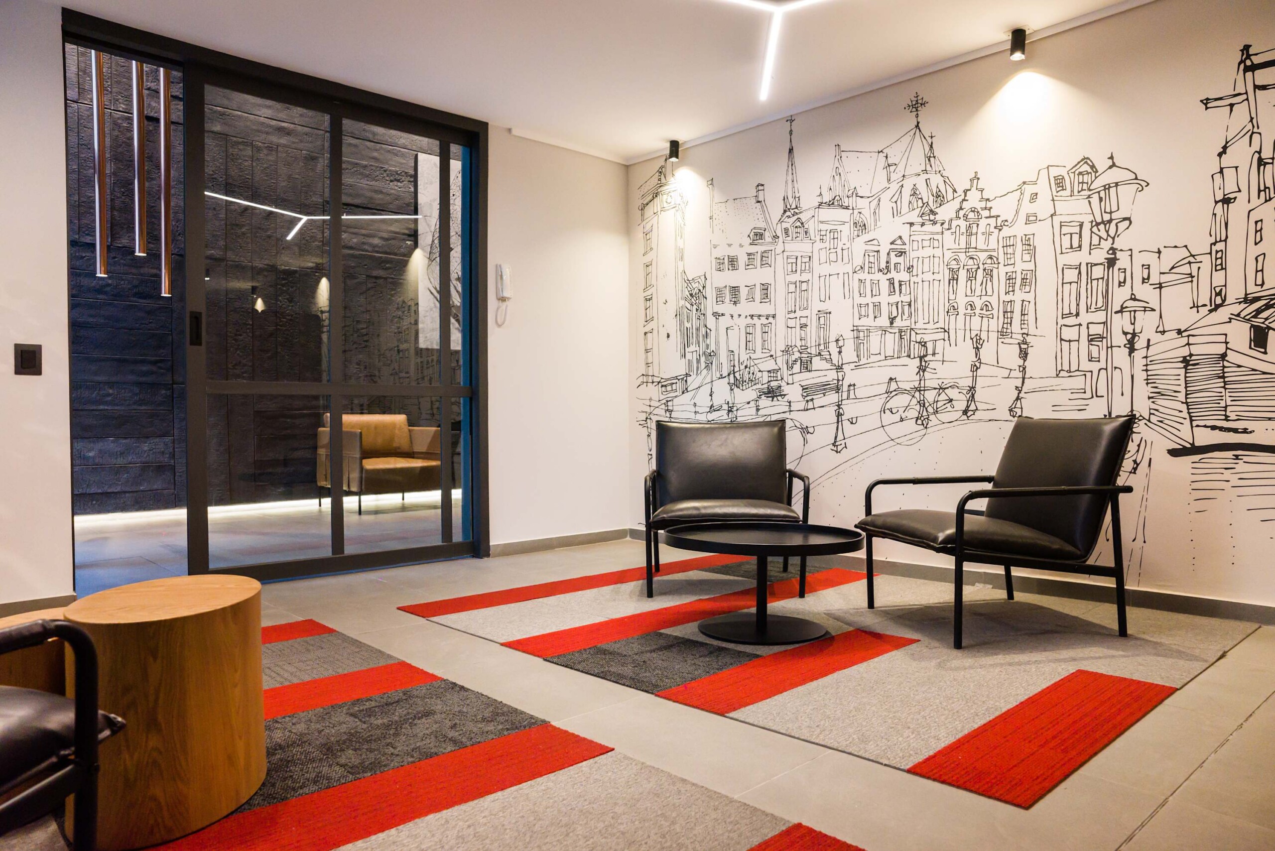 – **Living Area**: Relax on the plush seating, perfect for unwinding after a day exploring the city.
