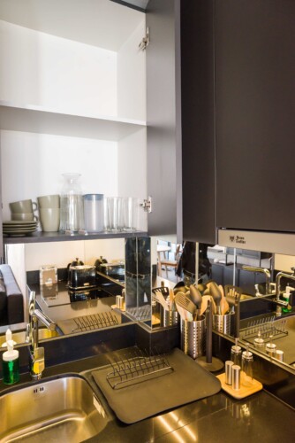 – **Kitchenette**: Equipped with a coffee maker, cookware, and dishes, ideal for preparing light meals.