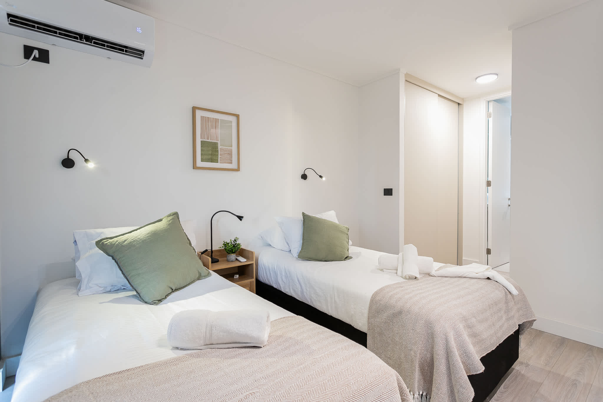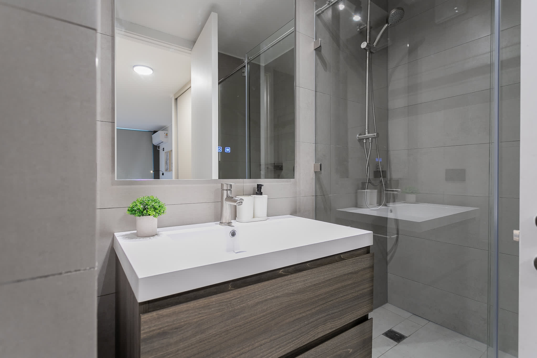 Your group gets the VIP treatment! The entire apartment, including the view-drenched terrace, is your private kingdom. Plus, exclusive access to the building’s pool and gym elevates your stay to legendary status. Prepare to be spoiled.