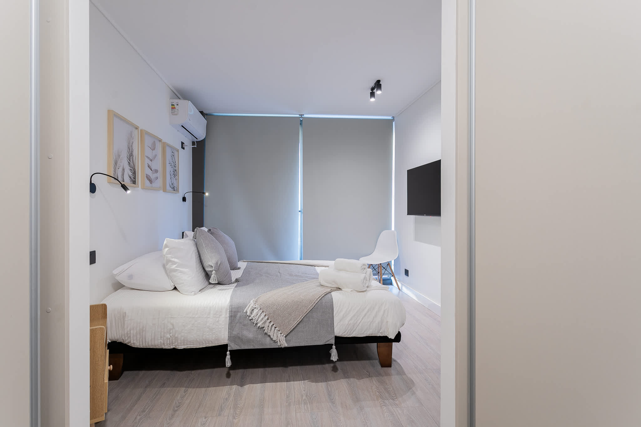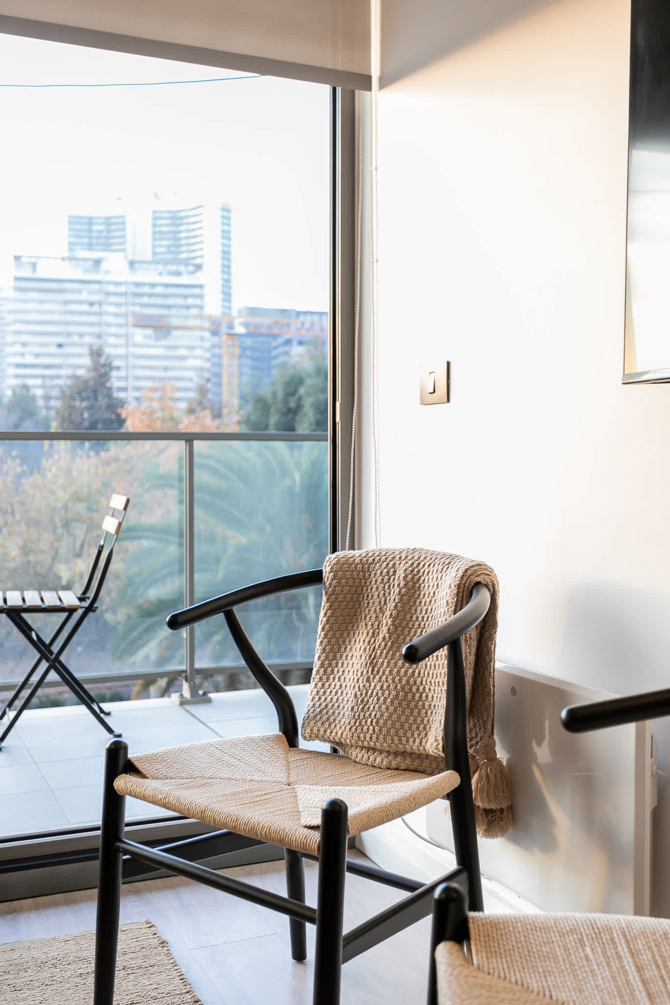 Imagine waking up to Santiago’s skyline painting your bedroom window, then stepping onto your terrace for morning coffee with a view. This 2BR haven, designed for 5, is a sensory feast. A gourmet kitchen fuels your inner chef, and the elegant living space is perfect for sharing stories after a day of exploration. Your Santiago story is served with style!