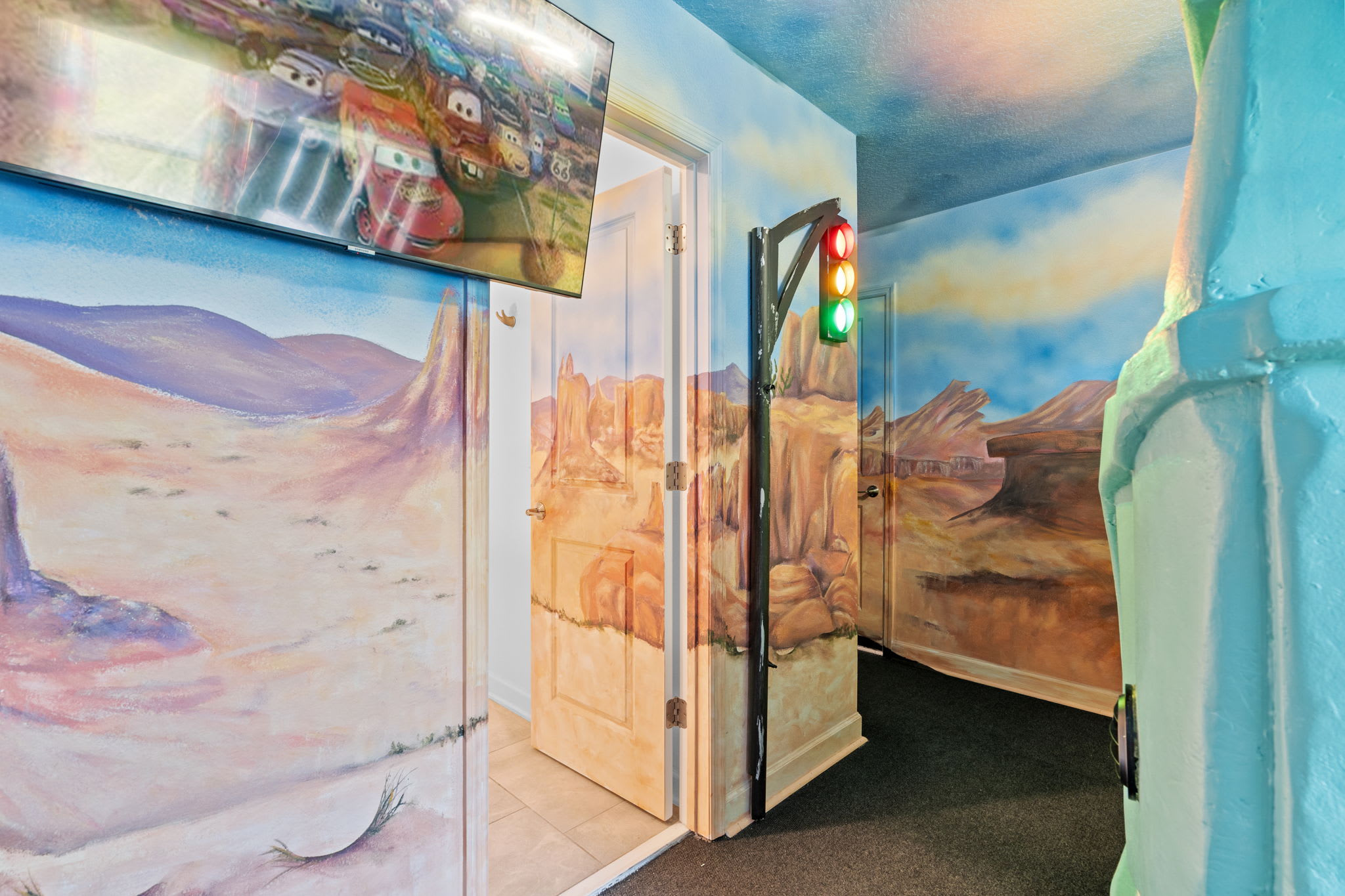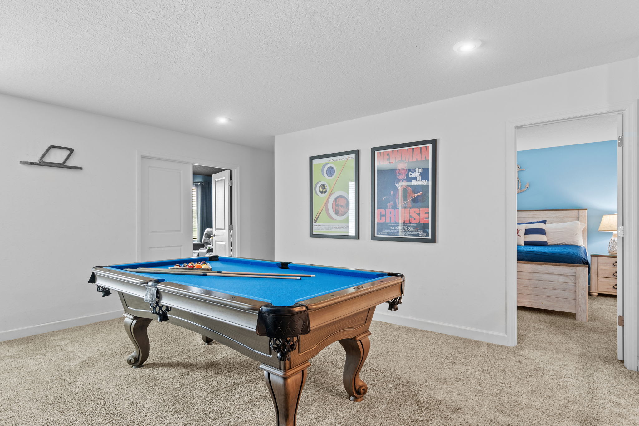 The interior of our home is designed to provide a cozy and welcoming atmosphere for guests of all ages. From the charming decor to the spacious layout, every detail has been carefully curated to ensure a memorable stay. The private theater room offers hours of entertainment, while the game room and PS5 promise fun for everyone in the family. Relax in the inviting living spaces or enjoy a meal together in the fully equipped kitchen and dining area.