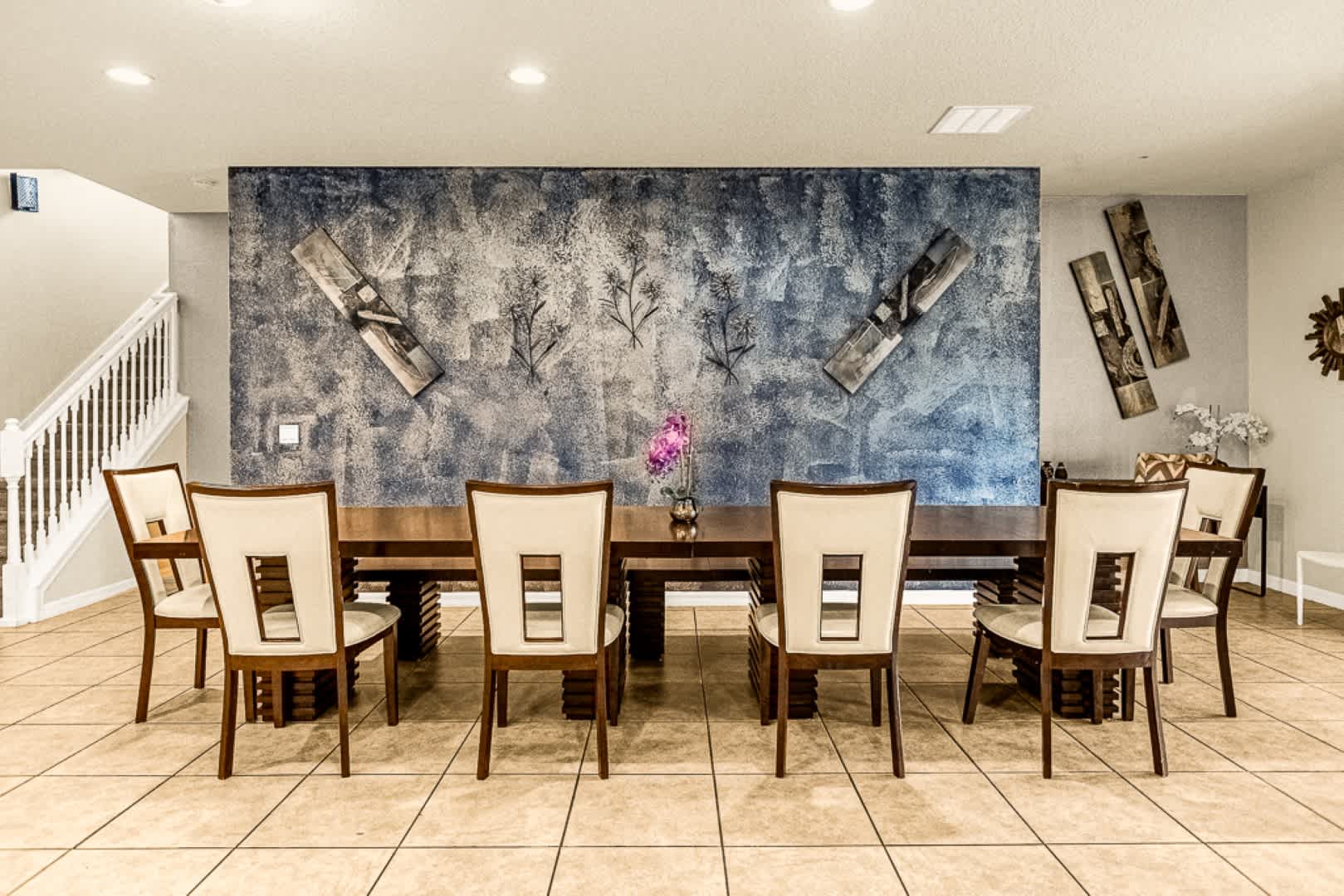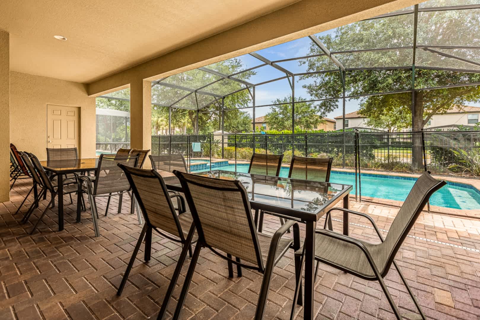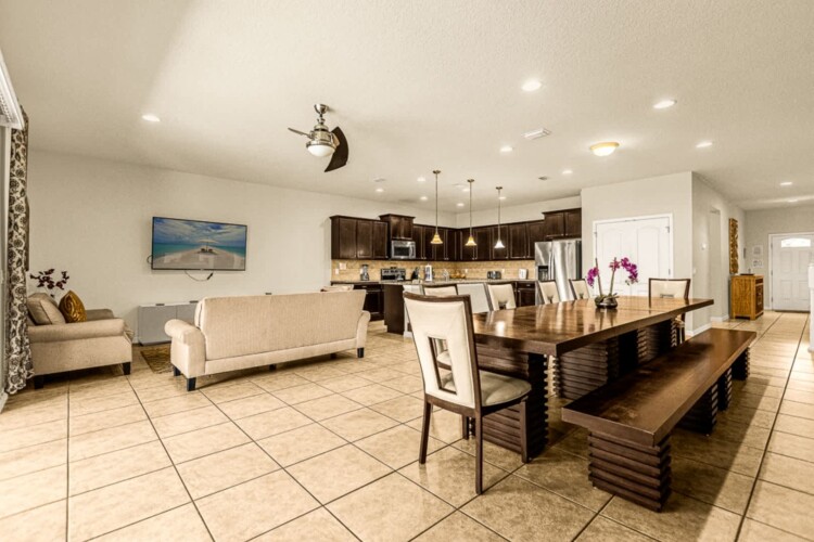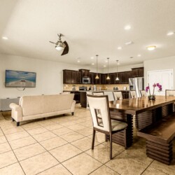 This spacious 9-bedroom home offers ample space for everyone to relax and enjoy. With 12 beds and 6 bathrooms, there is more than enough room to accommodate your group. The living room is perfect for gathering and spending quality time, while the game room offers entertainment for all ages. The fully equipped kitchen allows you to prepare delicious homemade meals, and the private pool with a terrace is the ideal place to cool off and enjoy the Florida sunshine.