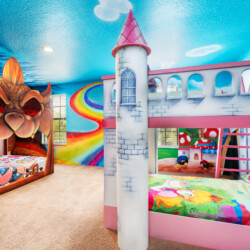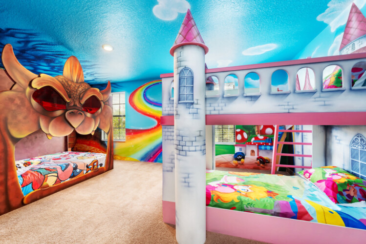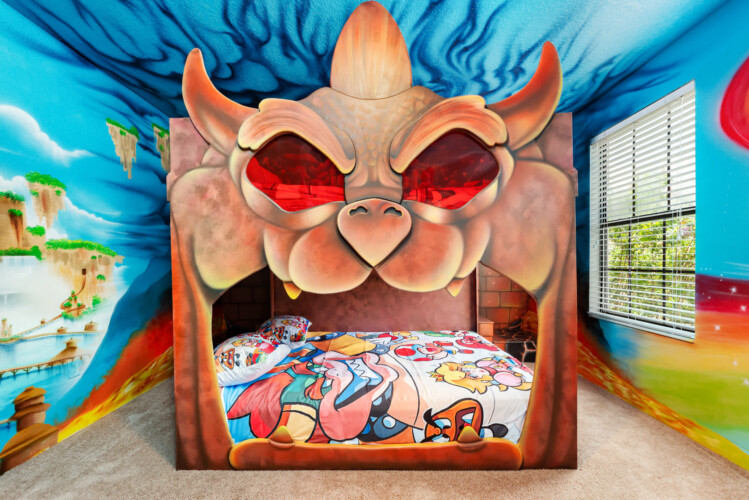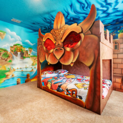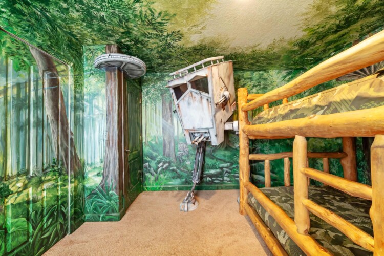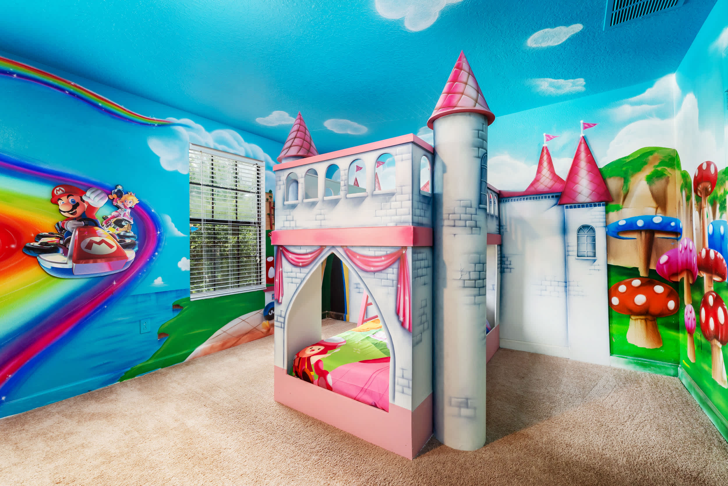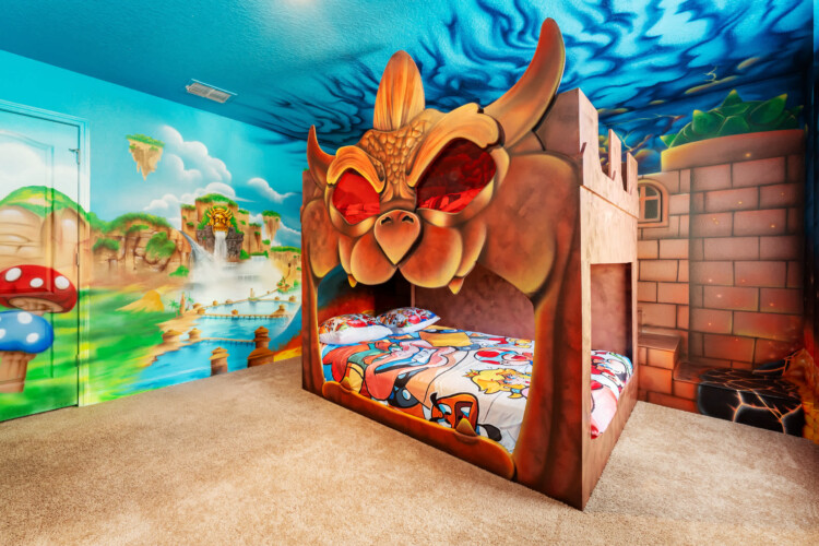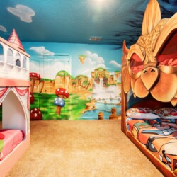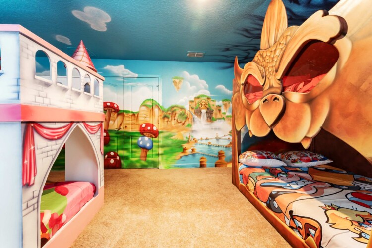 The home is wonderfully furnished with hours of fun waiting for you and your guests inside the game room, loft, or one of our amazing themed rooms. Whether it is hanging out with Ewoks or exploring the amazing Mario world room, you sure are to have an amazing time here.