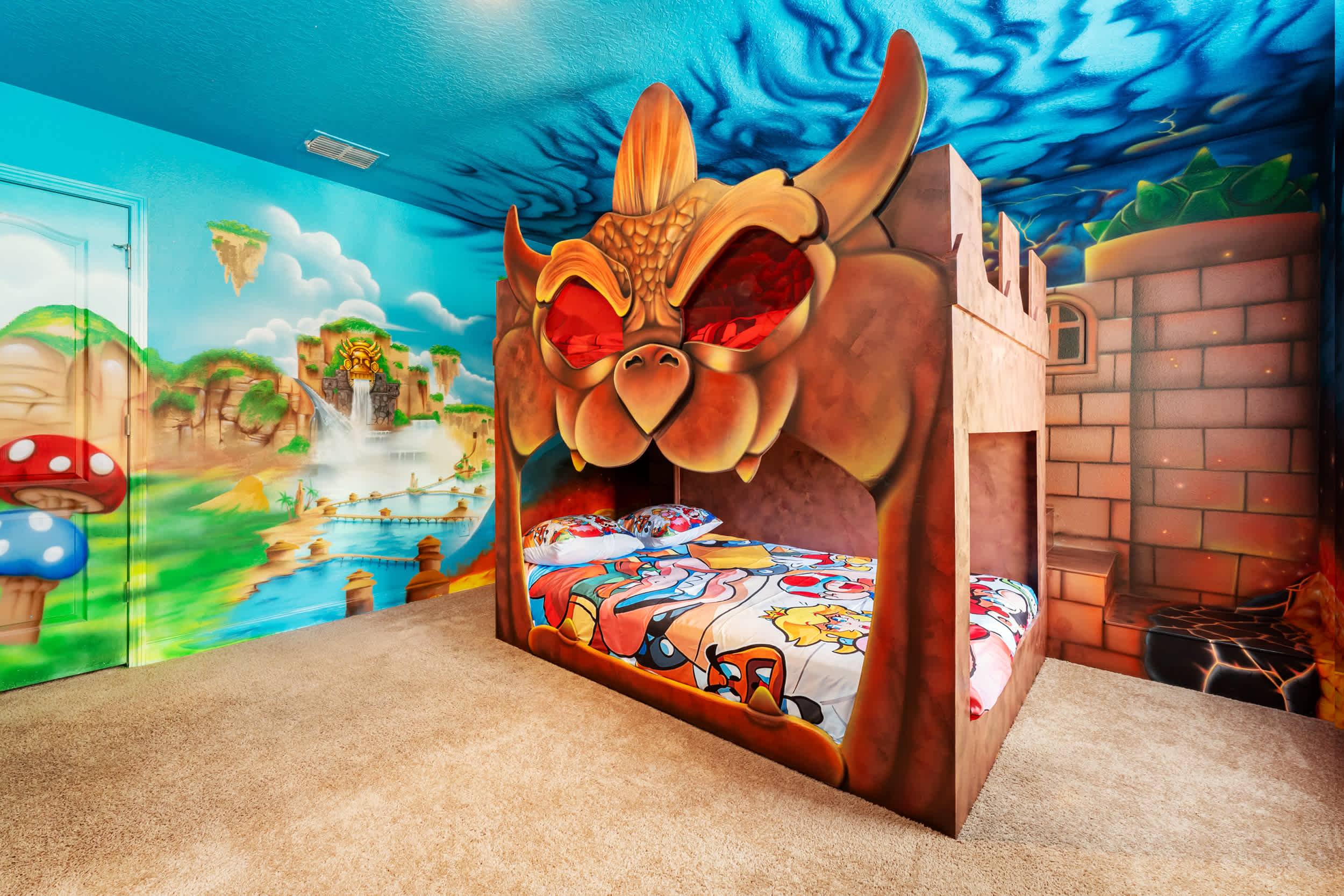 Bedroom 9-Super Mario World: Two Bunks – One Full over Full, One Twin over Twin – 2nd floor.