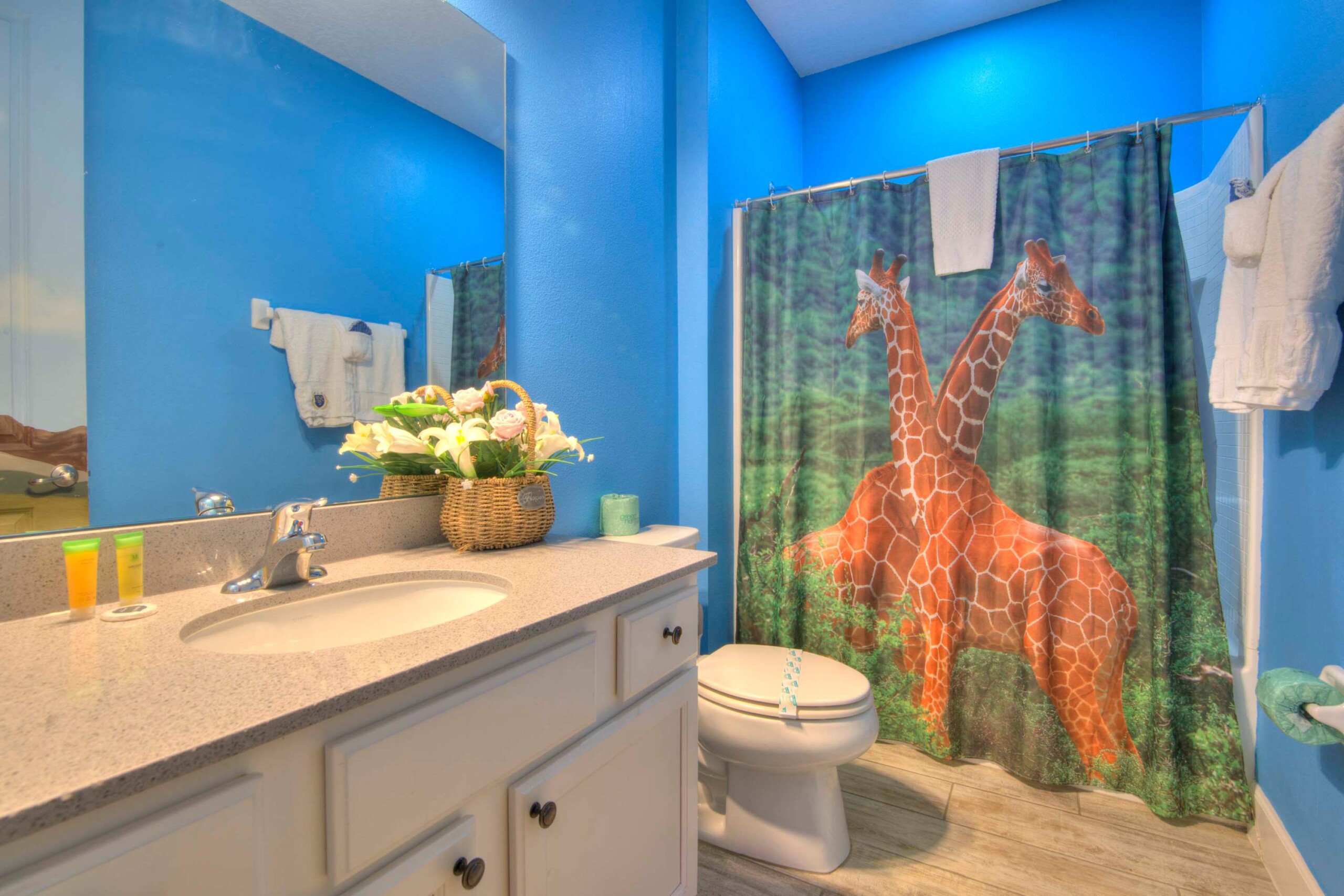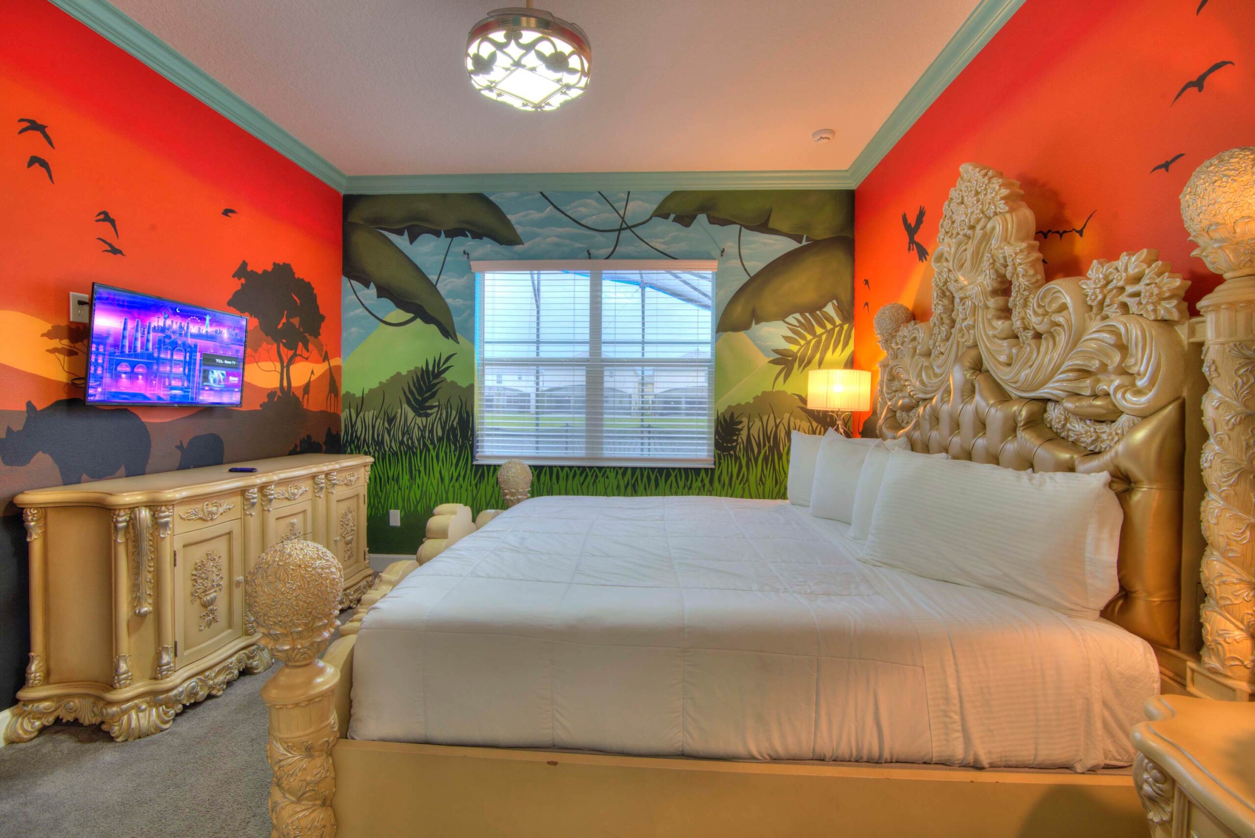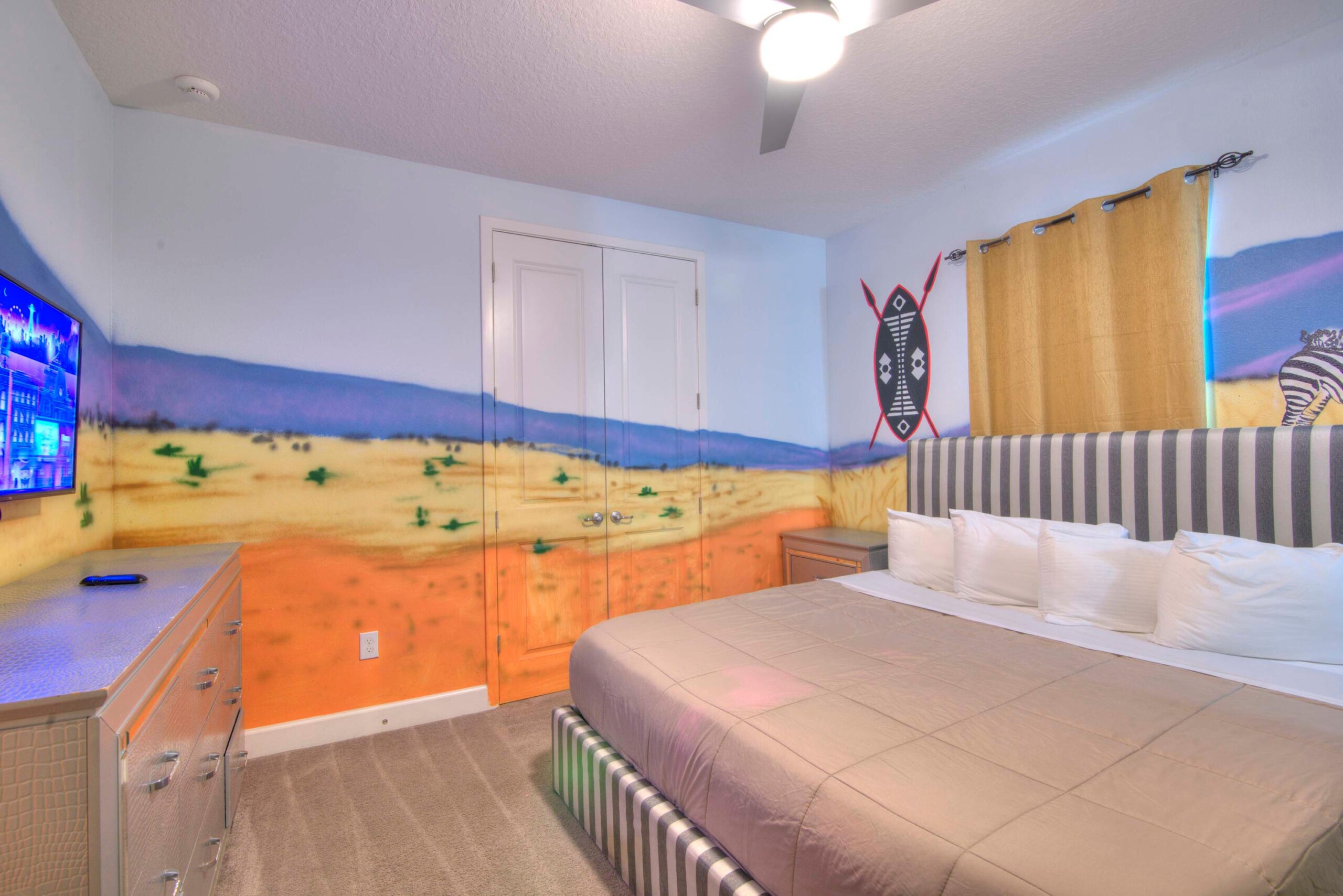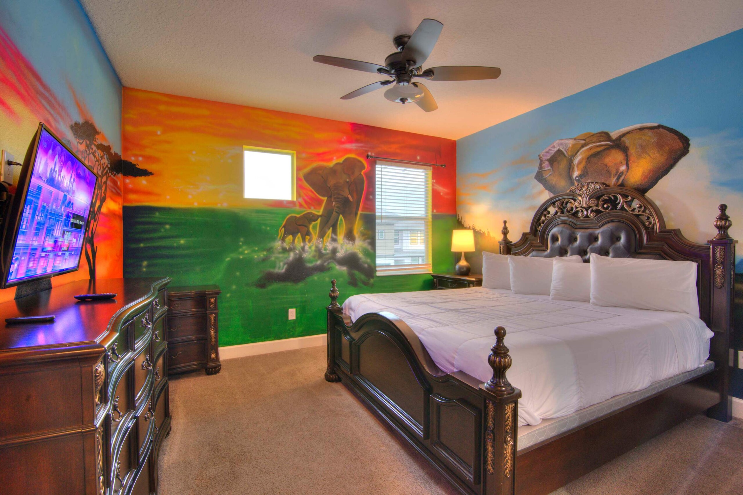 Immerse yourself in vibrant safari decor, where modern amenities ensure a comfortable, unforgettable stay.
