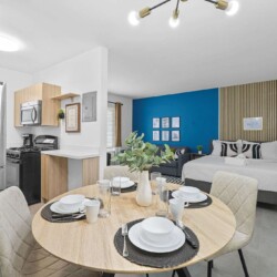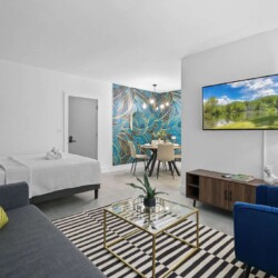 Step into paradise with this stylish 1-bedroom apartment, located just moments from the sun-kissed sands of Miami Beach. Designed for ultimate comfort, it features a luxurious king bed, a cozy queen bed, and a sofa bed – ideal for families, friends, or couples looking for a relaxing retreat. The fully equipped kitchen lets you whip up delicious meals, so you can enjoy home-cooked favorites after a day of beach fun.