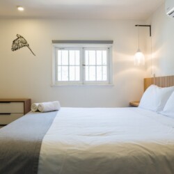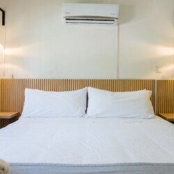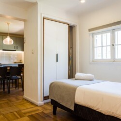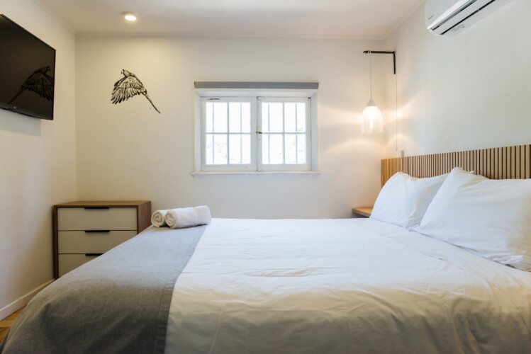 – Bedrooms: One tranquil bedroom with a queen-sized bed and ample closet space; a second bedroom offers flexible sleeping arrangements.