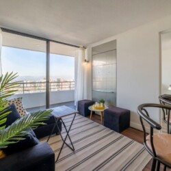 Looking for a comfortable and stylish place for your next visit to Santiago? Our apartment is the perfect choice! Relax in our outdoor pool during the summer (Dec-Mar), stay fit in our gym, and enjoy a barbecue with friends or family (additional fee applies). Our prime location gives you easy access to Manquehue Metro Station, Apumanque Mall, and Estadio Italiano. Book now and enjoy an unforgettable stay!
