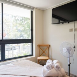 Discover your ideal retreat in the heart of Santiago with this stylish 2-bedroom, 2-bathroom apartment, perfect for up to 5 guests. Revel in the comfort of a fully equipped kitchen, and a cozy living area designed for relaxation. Unwind with a soothing bath. With a doorman and elevator for convenience, plus proximity to vibrant dining and shopping, this is your gateway to adventure. Book now for an unforgettable Santiago experience!
