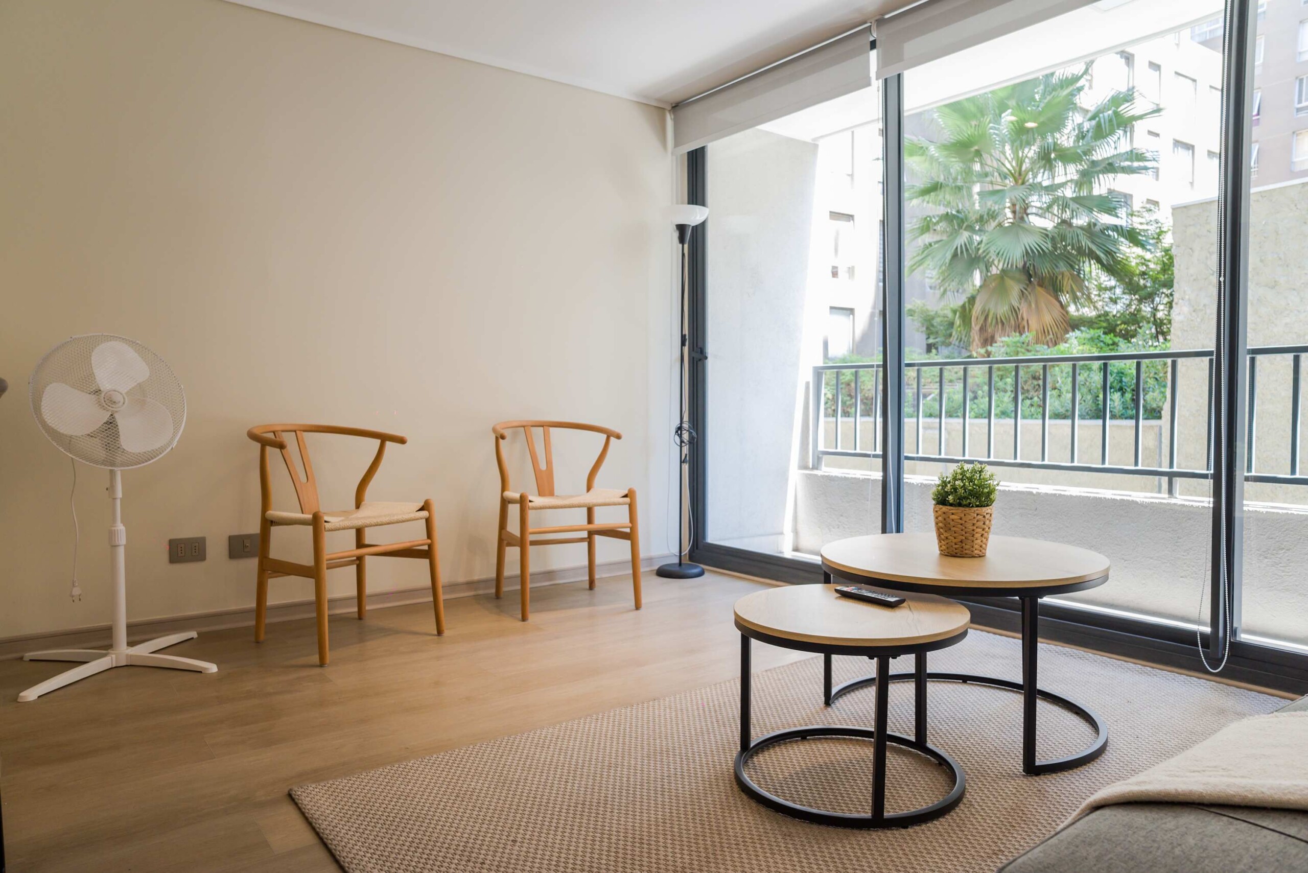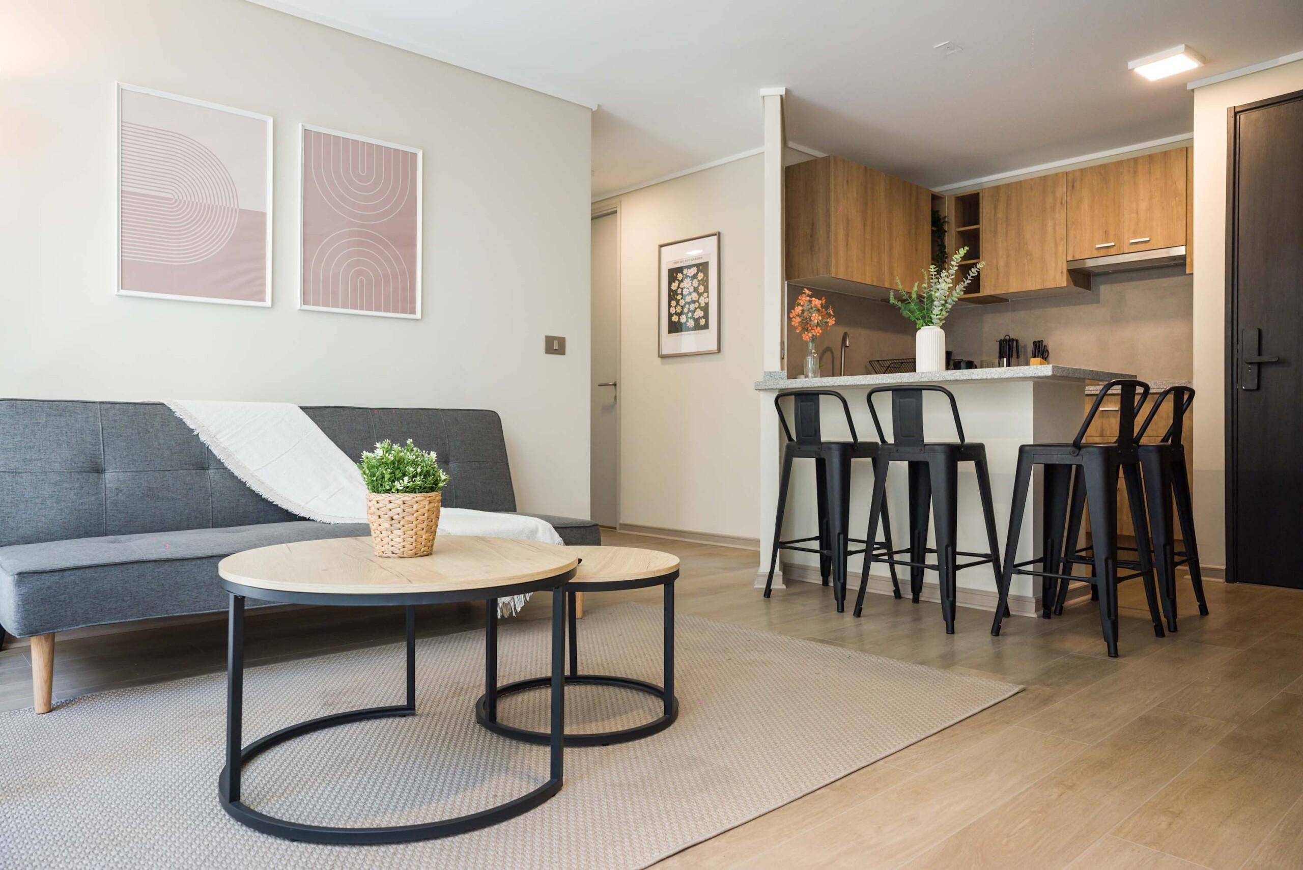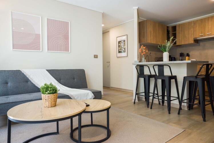 Step into this stylish Santiago apartment, where comfort meets modern elegance. The open-concept design seamlessly connects the living room, dining area, and fully equipped kitchen, creating a bright and inviting space. Key features include: