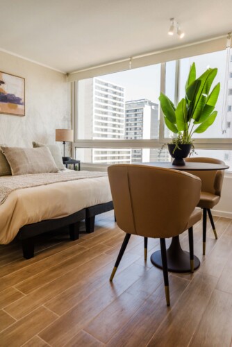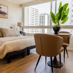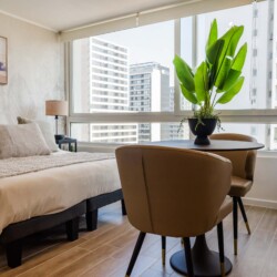 Discover your urban retreat in the heart of Ñuñoa, Chile. This chic Studio apartment offers a perfect blend of comfort and style. Unwind in the cozy double bed . Enjoy the convenience of a modern kitchen and a soothing bathroom with a bathtub. Include heating, a mini fridge, and a doorman for added peace of mind. Just steps from the metro, explore Santiago’s vibrant culture with ease. Book your unforgettable stay today!