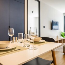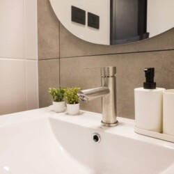 – **Bathroom**: Refresh in the sleek bathroom stocked with essentials.