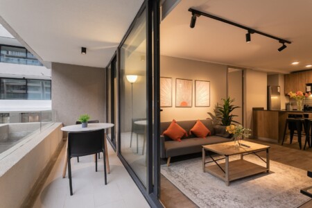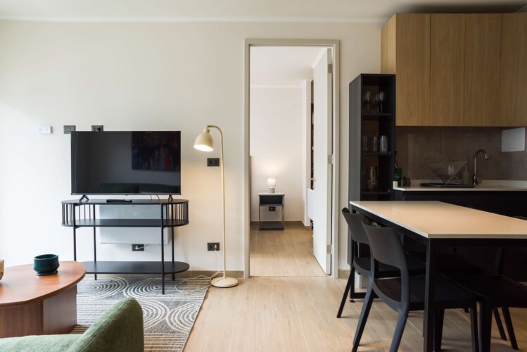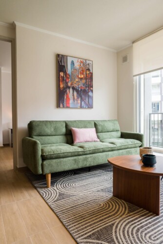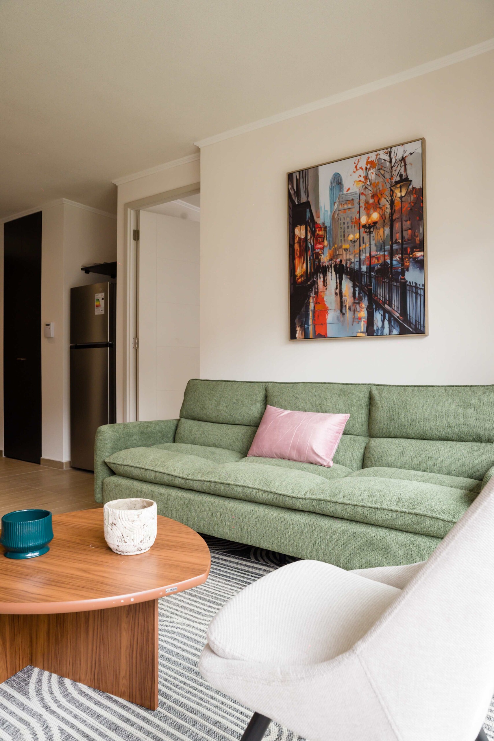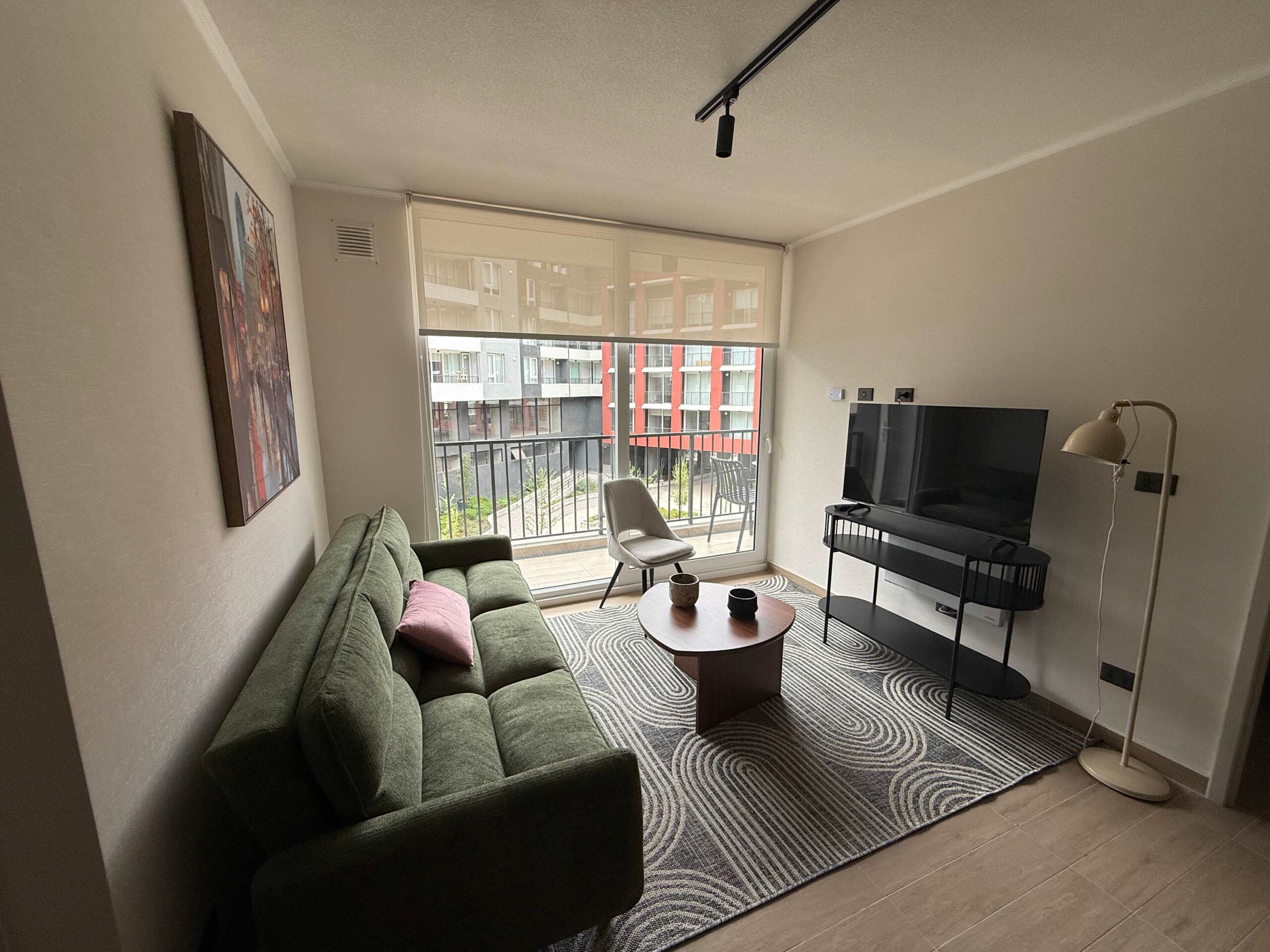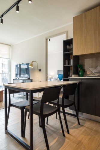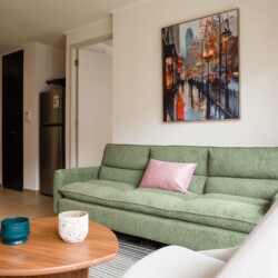 Step into this stylish Providencia apartment, where comfort meets modern elegance. The open-concept living area invites you to unwind, featuring cozy seating and a dining space perfect for shared meals.
