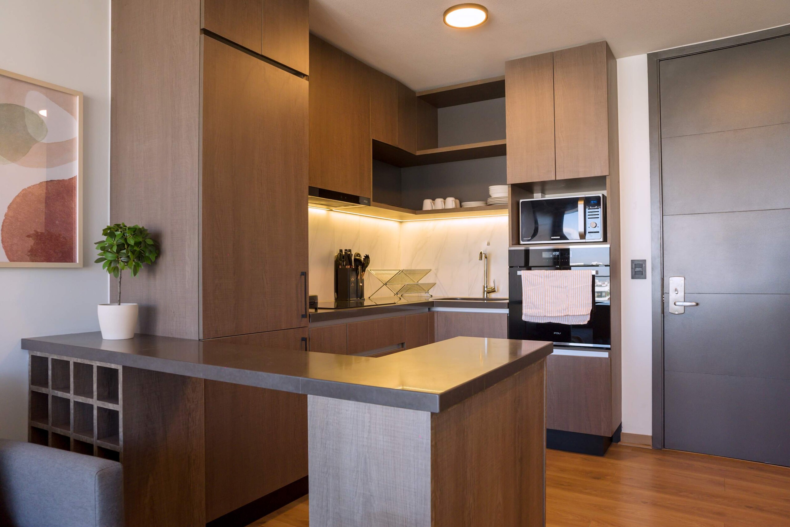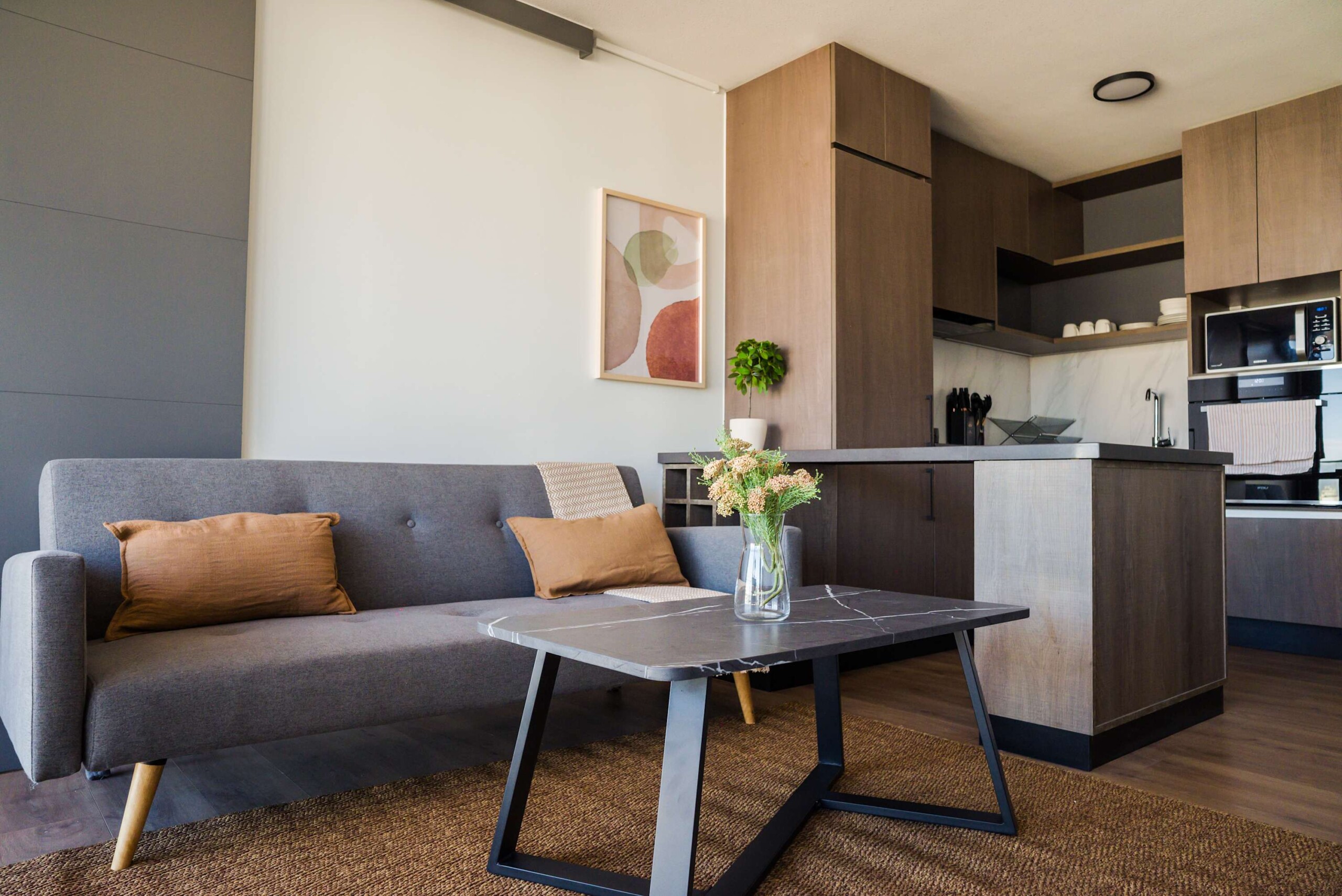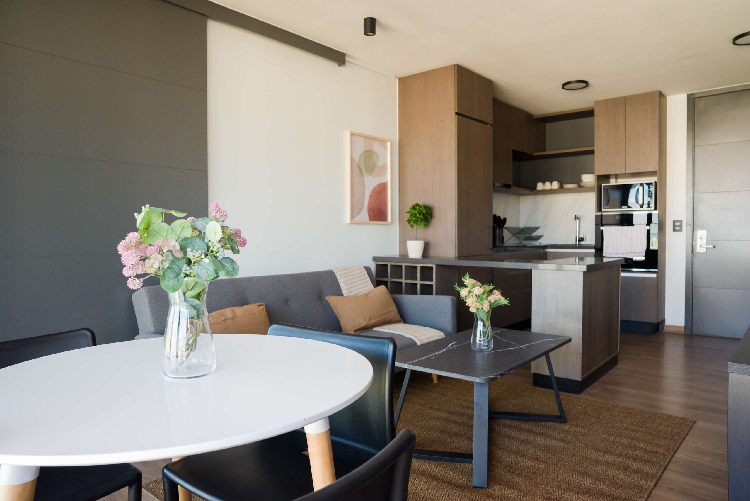 Discover a harmonious blend of modern elegance and cozy charm in this Las Condes apartment, designed for seamless living and relaxation.