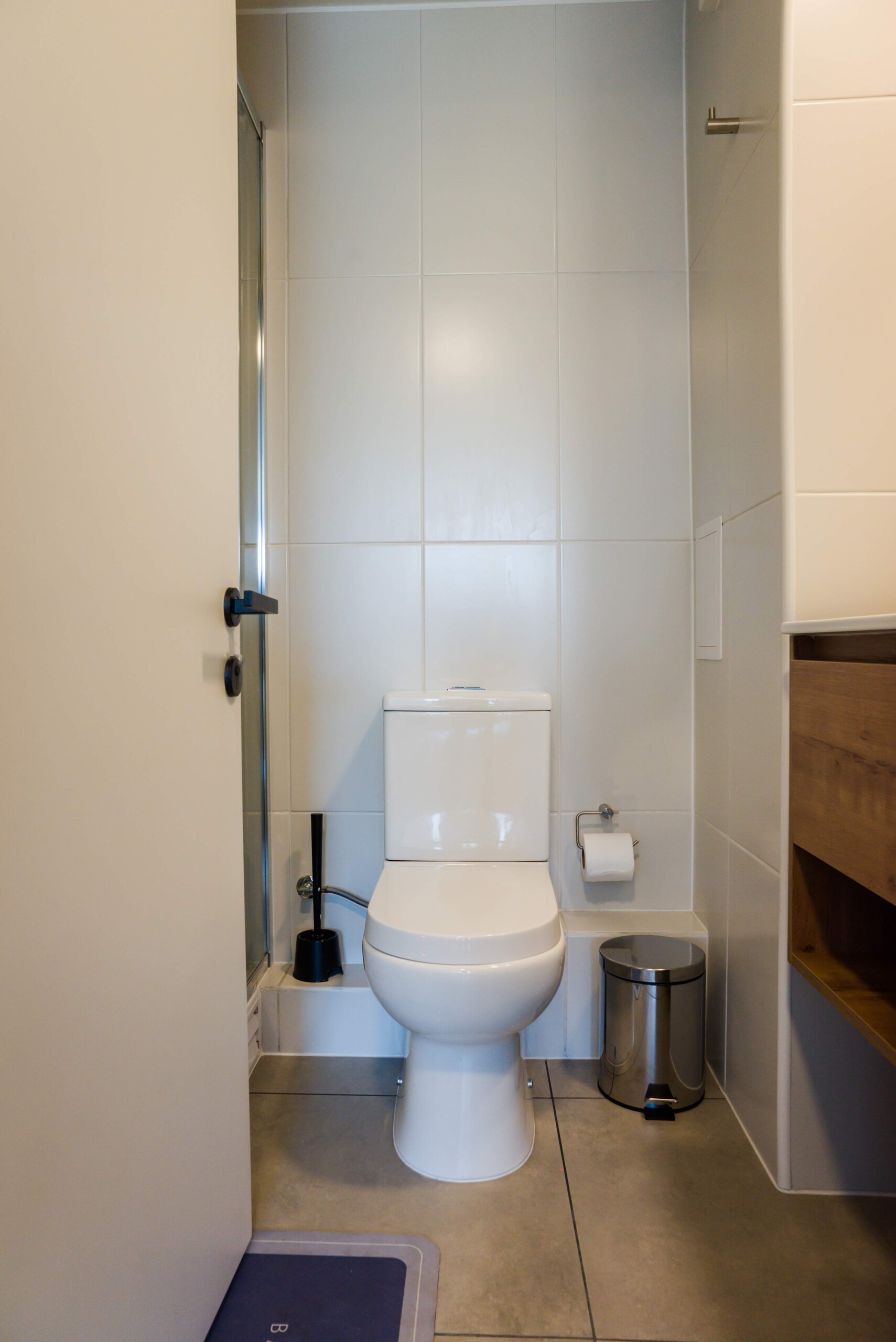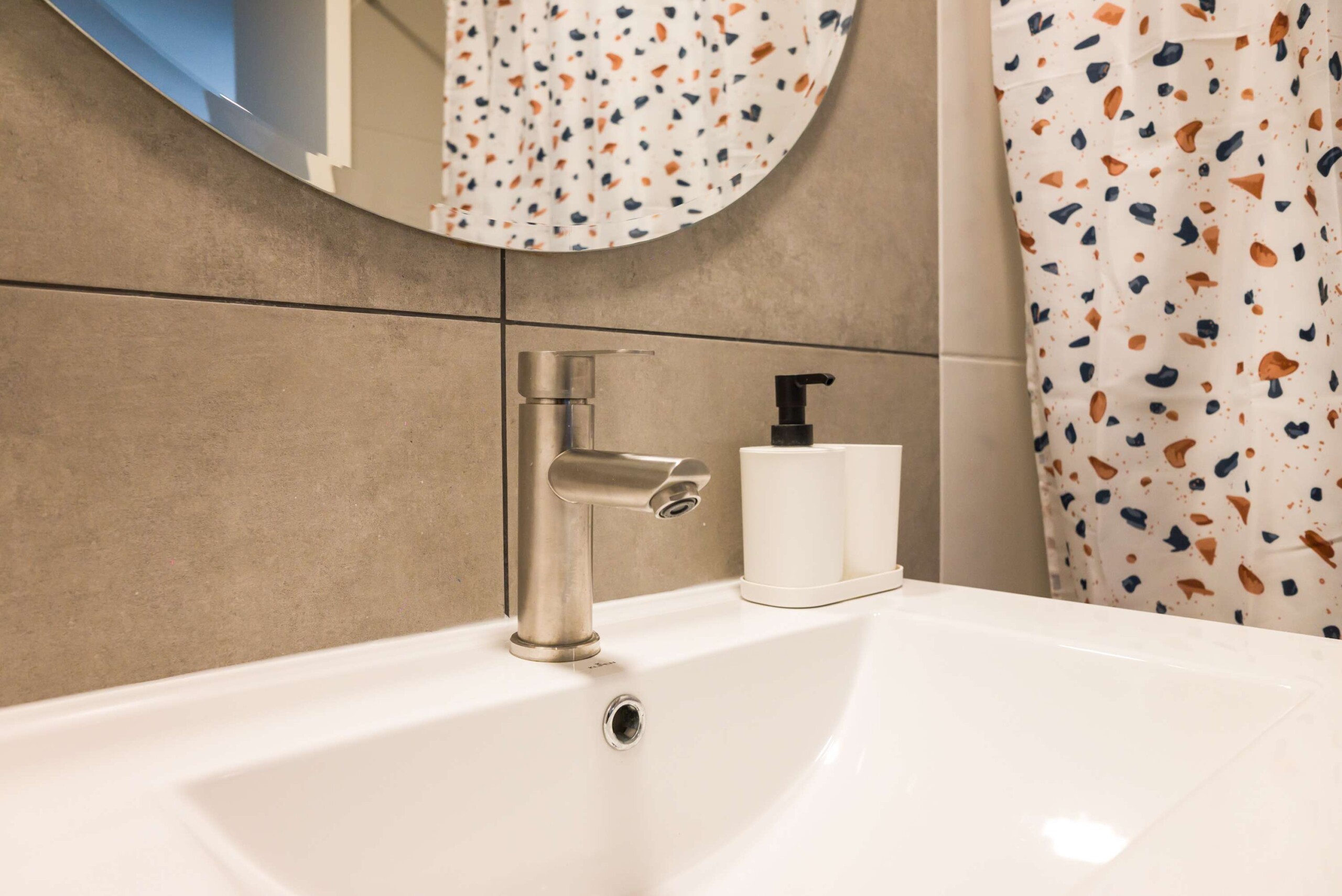– **Living Area:** Open-plan with a plush sofa bed and sleek TV, perfect for unwinding.