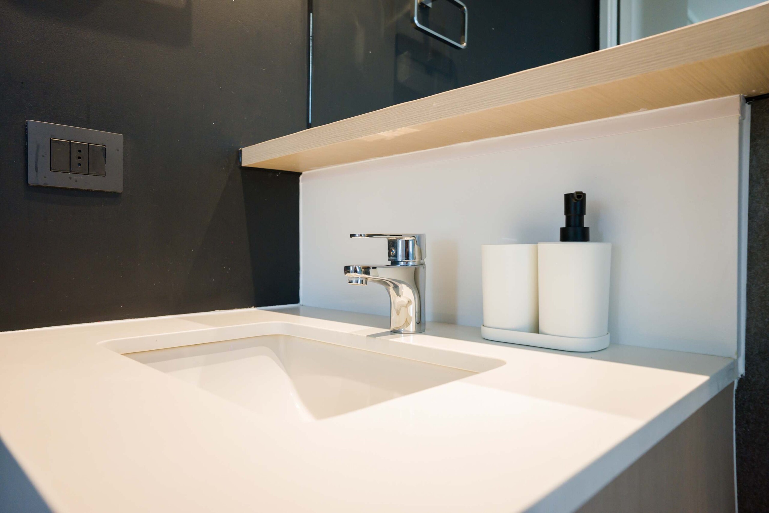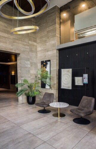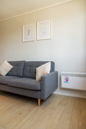 – **Living Area**: Open-concept layout with a cozy seating area perfect for relaxation or work at the convenient desk.