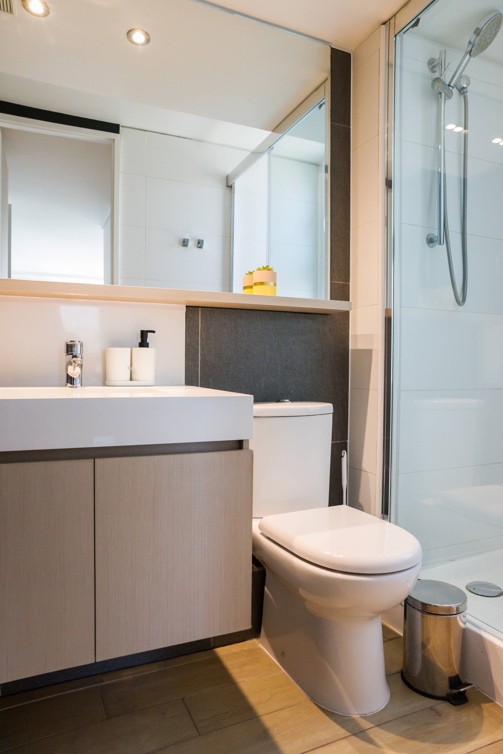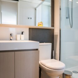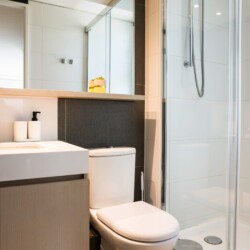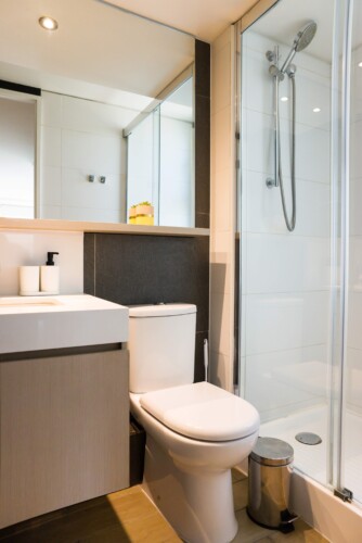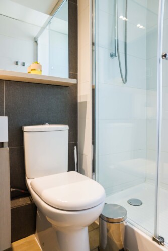 – **Bathrooms**: Two sleek bathrooms, one with a bathtub and accessible-height toilet for added comfort.