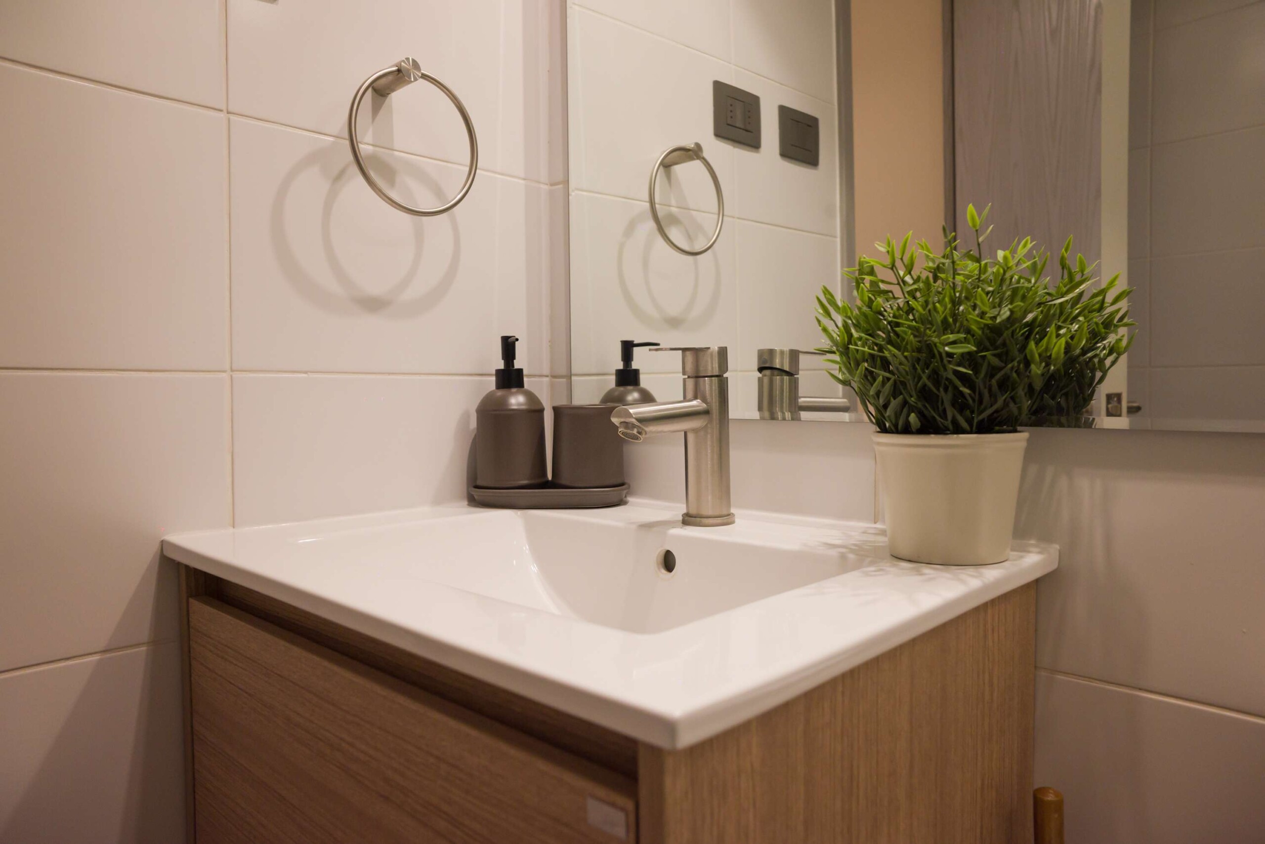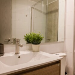 – Sleek bathroom with a relaxing bathtub