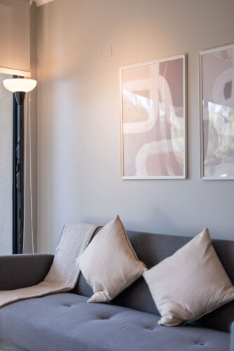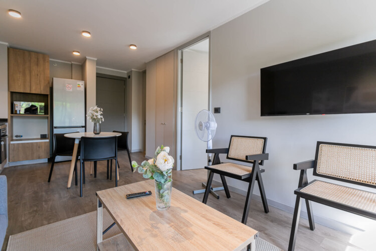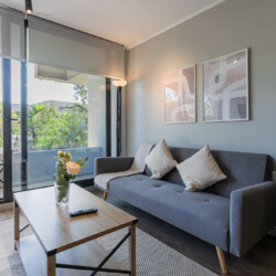 This bright apartment offers you a cozy and functional space for your stay in Santiago. Relax on the comfortable king-size bed or on the futon in the living room, ideal for resting after a day exploring the city. The kitchen is fully equipped so you can prepare your favorite meals. Enjoy the convenience of a modern bathroom and take advantage of the building’s incredible common areas: swimming pool, gym.