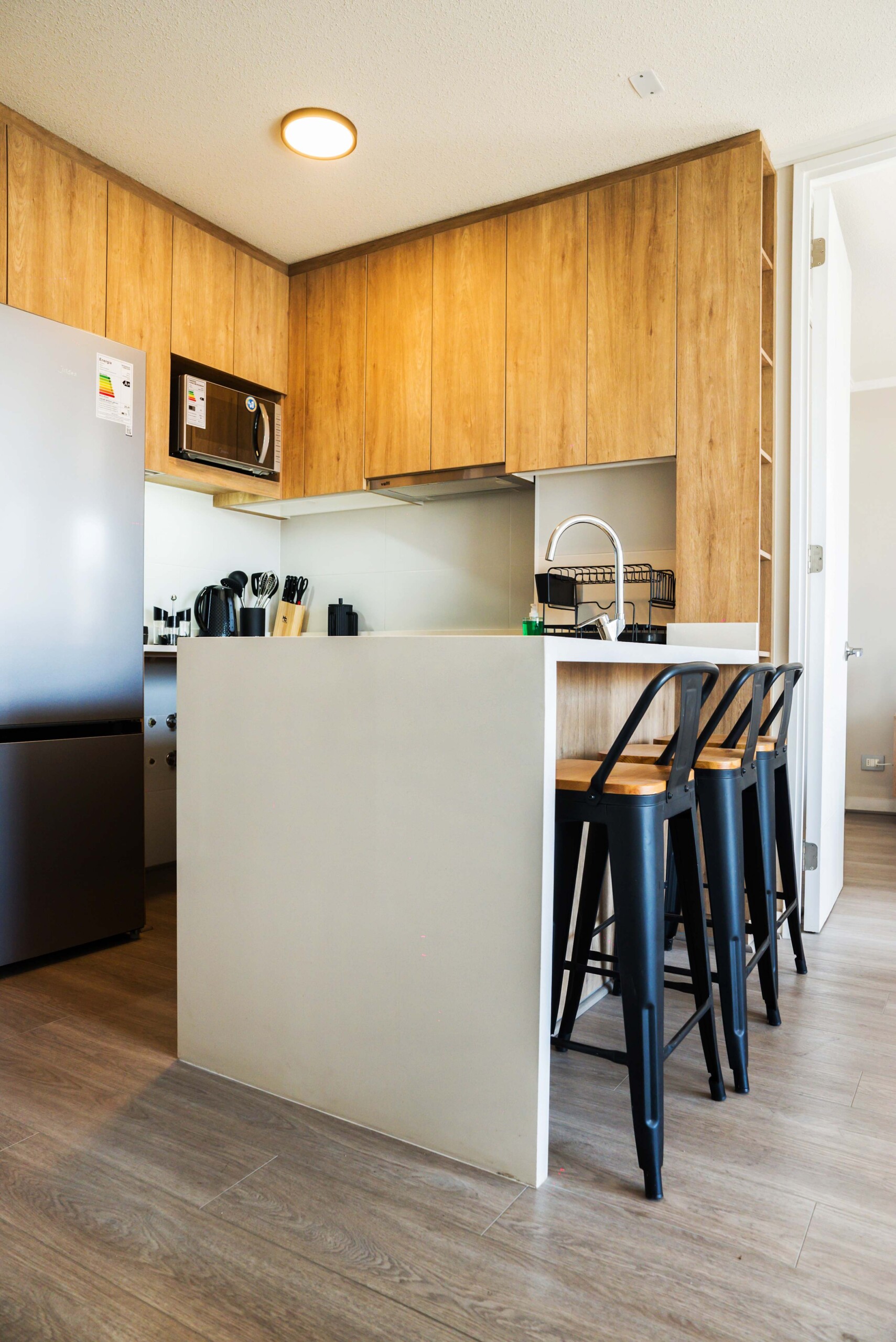 Step into this inviting Ñuñoa apartment, designed for relaxation and comfort. The open-plan living area seamlessly connects to a modern kitchen, perfect for culinary adventures. Key features include: