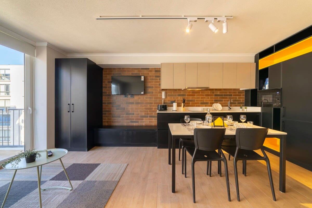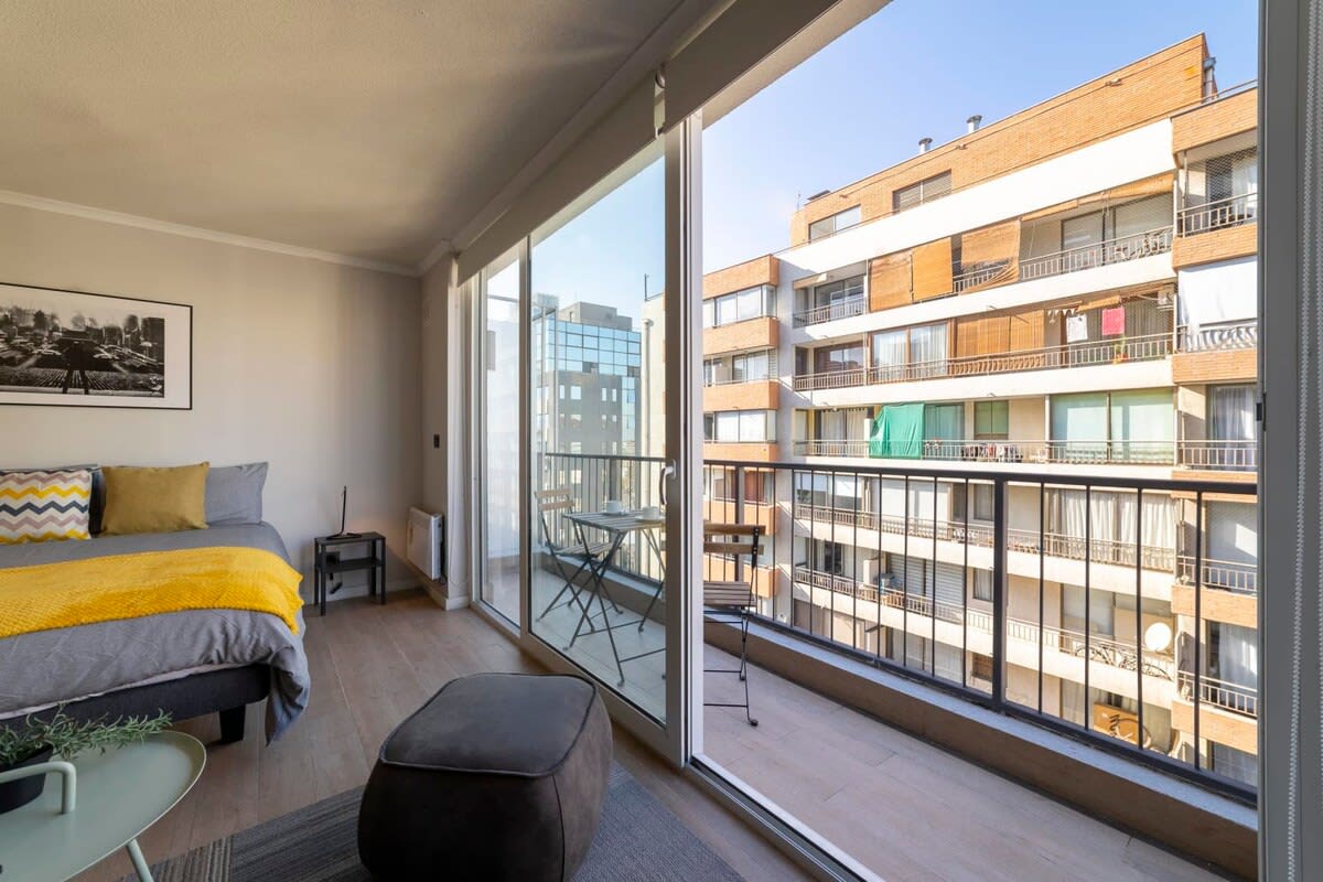 Discover your perfect getaway in the heart of Providencia, Santiago. This cozy studio comfortably hosts two guests, featuring an accessible-height bed and modern bathroom. Enjoy seamless relaxation with access to a communal pool and BBQ grill, all conveniently located on the 2nd floor. Explore the vibrant local scene with easy access to Manuel Montt Metro and the bustling Costanera Center. Secure and welcoming, our doorman and elevator ensure effortless stays. Book now for an unforgettable experience!