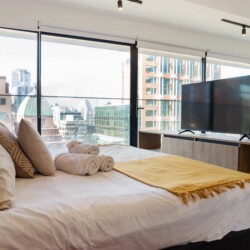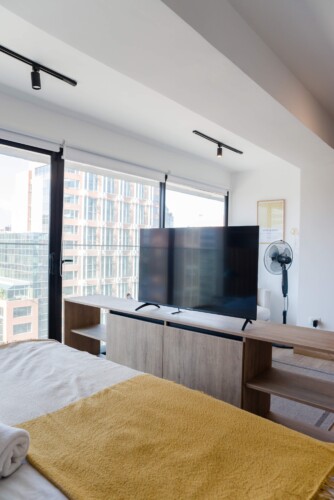 Welcome to our fully furnished apartment, designed for your ultimate comfort and convenience. Our Studio bedroom features a cozy double bed adorned with fresh, crisp linens, ensuring a restful night’s sleep. The full bathroom is stocked with plush towels, providing a touch of luxury during your stay.