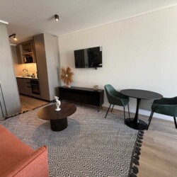 This chic apartment in Las Condes offers a seamless blend of modern elegance and comfort, creating a serene retreat for two guests.