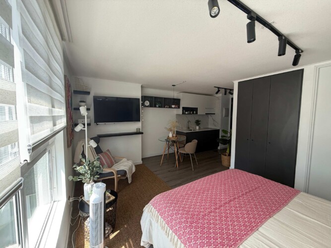 Step into your stylish Ñuñoa retreat, where comfort meets modernity. This charming studio offers a seamless flow from room to room, designed to accommodate up to 2 guests.