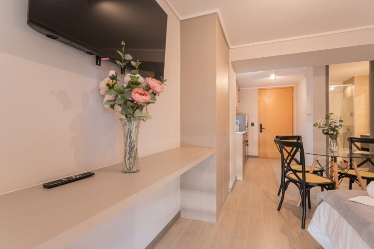 Step into this charming Ñuñoa studio, a perfect retreat for two guests. Enjoy the seamless flow from the cozy living area to the fully equipped kitchen, where culinary adventures await. Key features include: