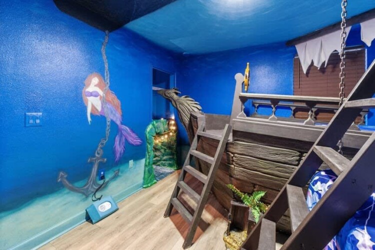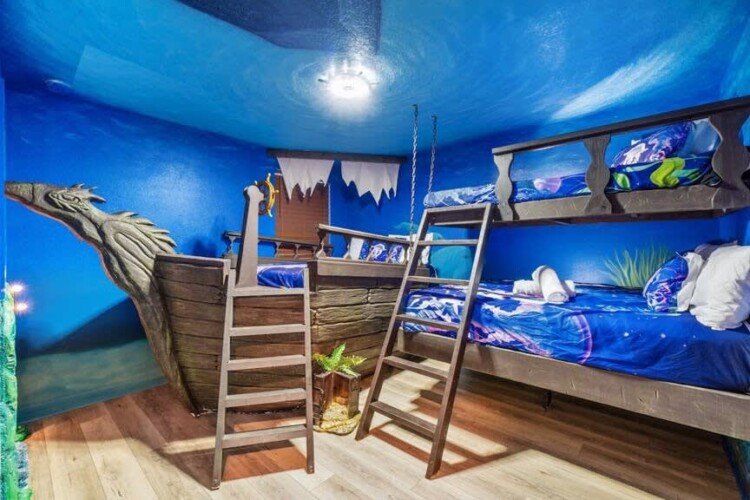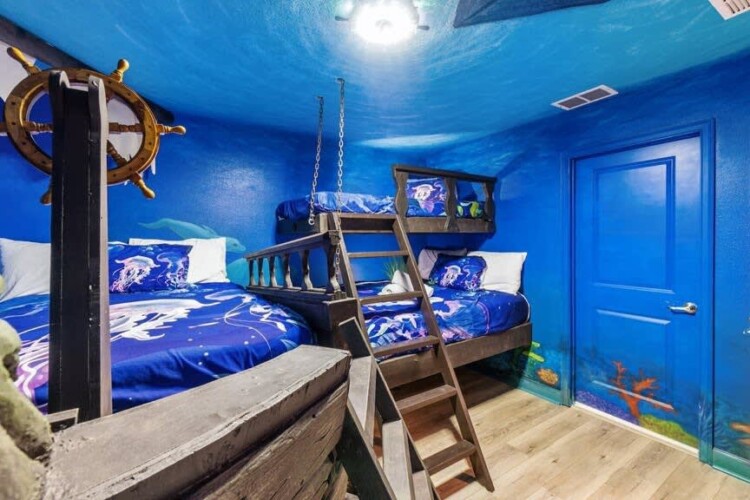 Bedroom 3: Pirate Room: One Full Bed and a bunk of One Full and One Twin – 2nd Floor