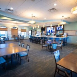 This luxurious amenity center is for homeowners in Lennar’s Champions Gate together with vacationing guests staying in the resort’s short term rental approved neighborhood, The Retreat at Champions Gate. Inside the 16,000+ sq. ft. | 1,500 m² clubhouse building you will find The Grille Room restaurant and bar, concierge desk, a movie theater, fitness center, game room, and more. Among the outdoor amenities are two temperature controlled pools, a lazy river, 2-story water slide, children’s water play structure, sand volleyball, rentable cabanas, poolside food and drink service, and the Tiki Bar. Separately, the community also features 7 tennis courts and the Champions Gate Country Club golf course.
