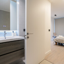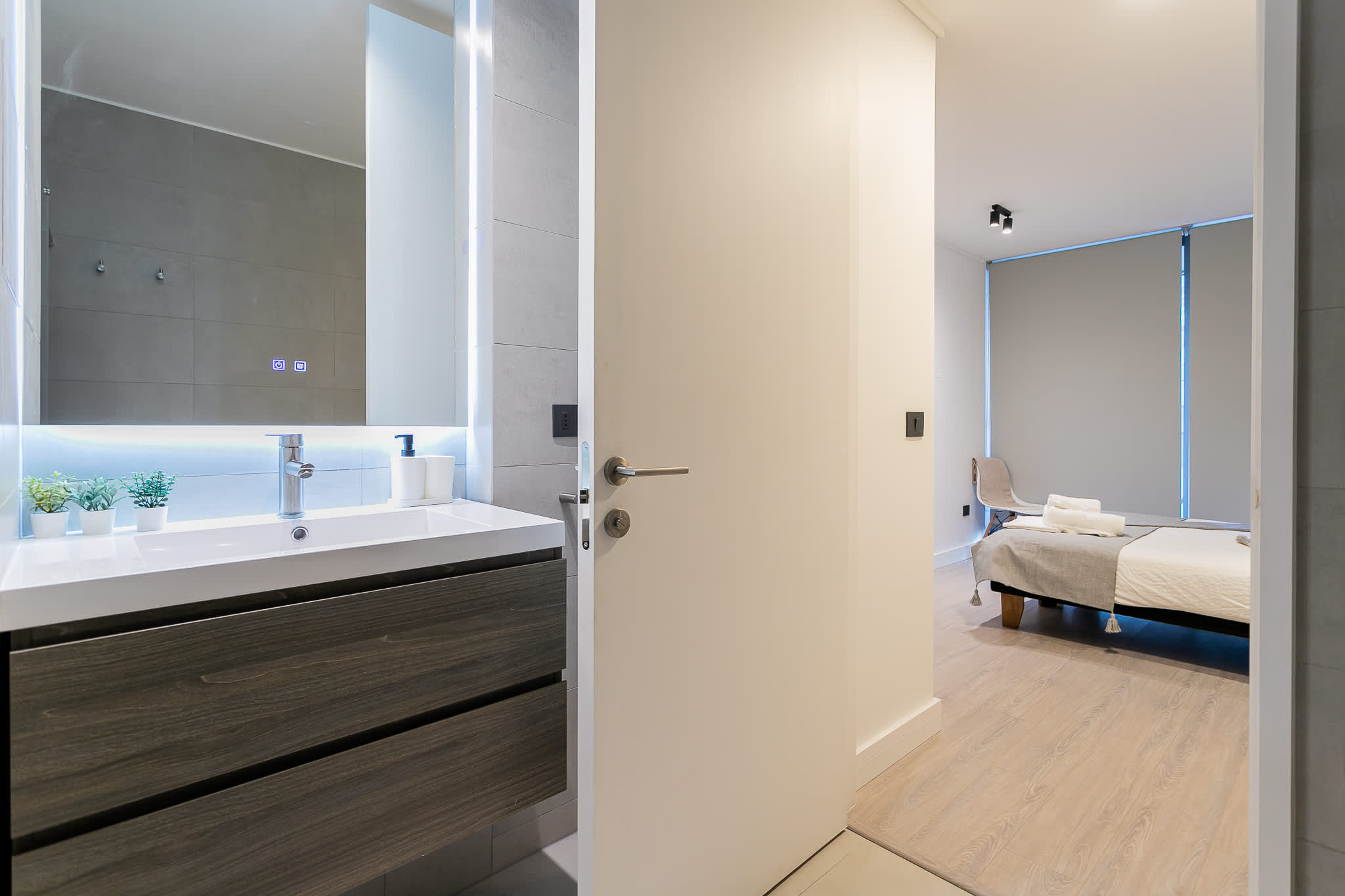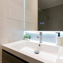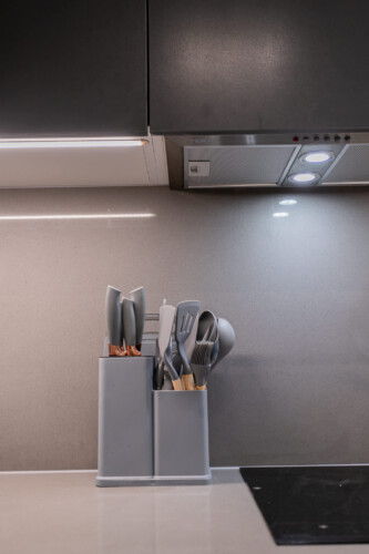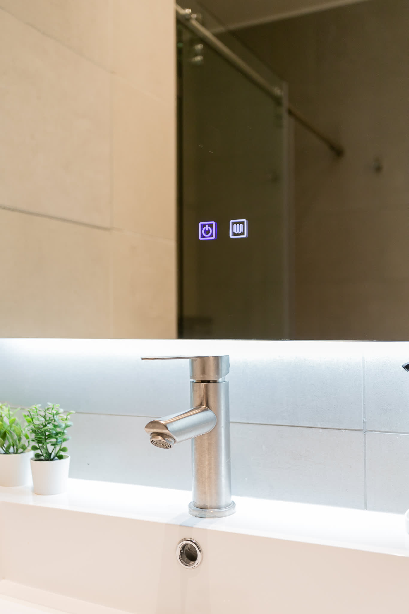 – Bathroom: Modern and sleek, complete with a relaxing bathtub.