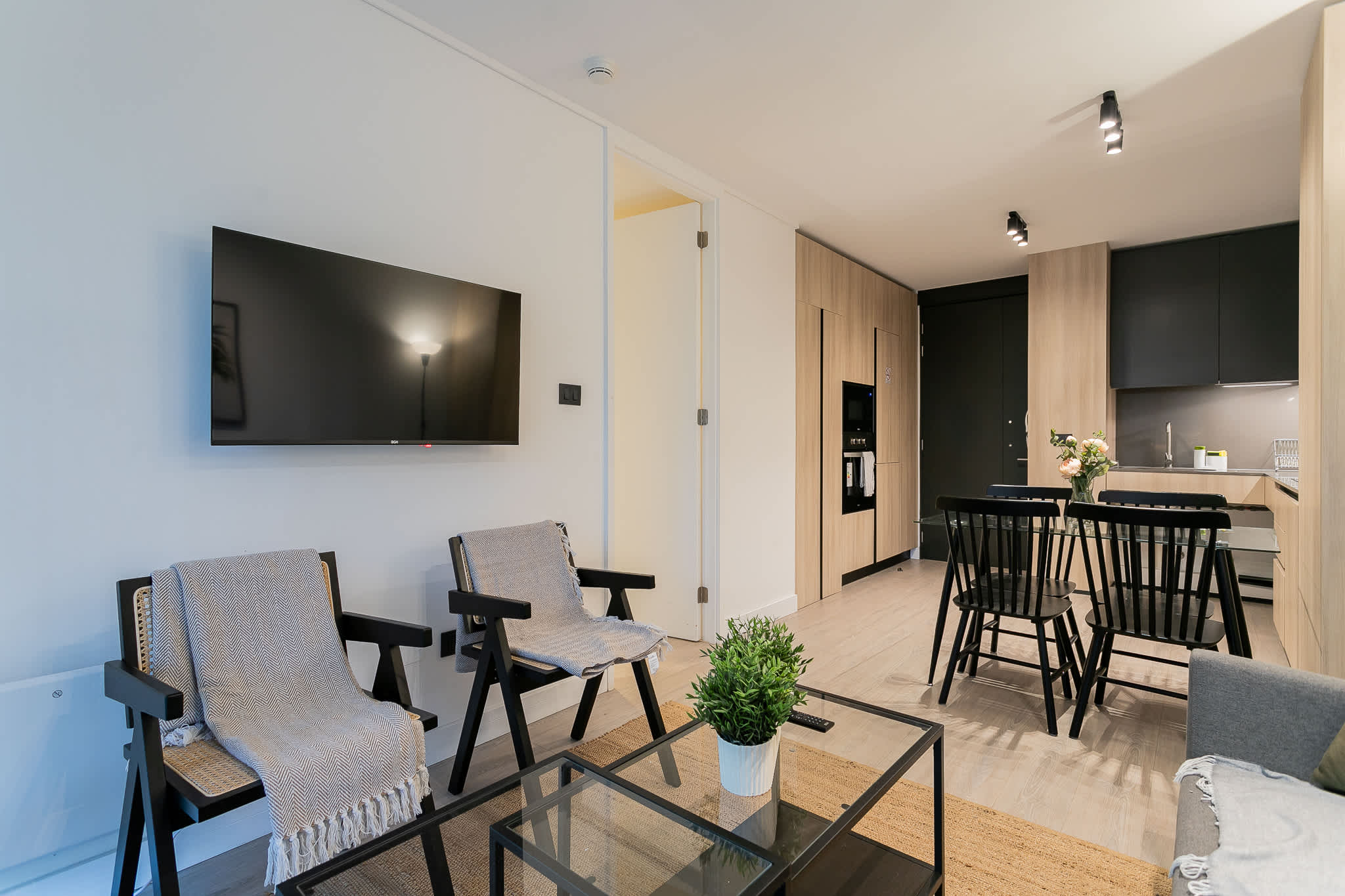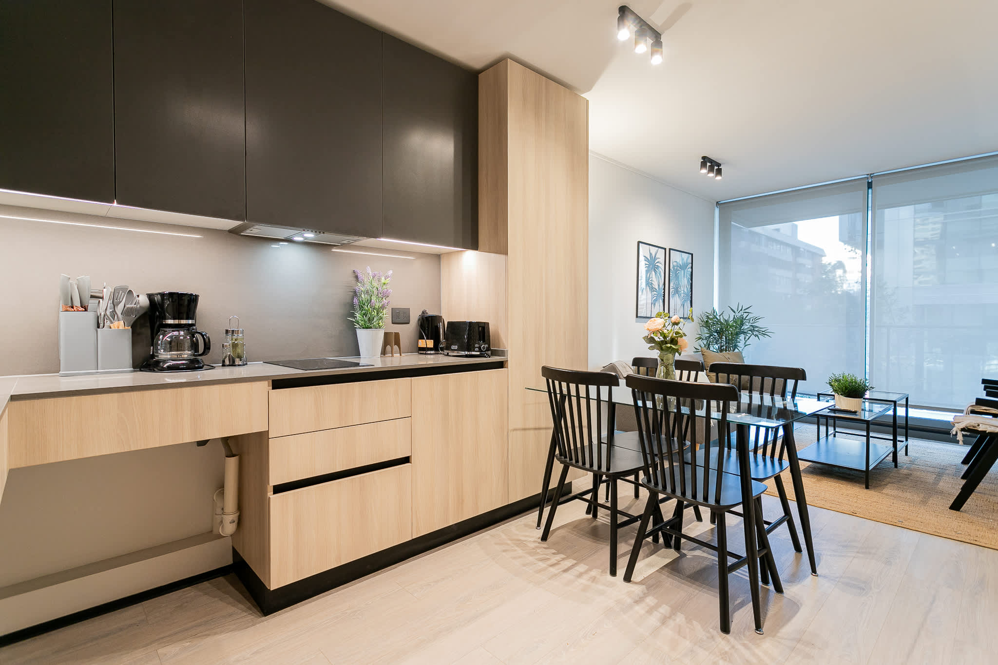 Step into this chic Las Condes apartment, where comfort meets style in a seamless open-plan layout.