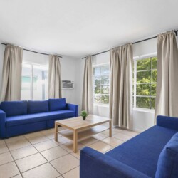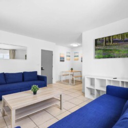Beach vibes await! This stylish 1-bedroom apartment in the vibrant North Shore of Miami Beach is your perfect escape. Enjoy a comfortable king bed, two cozy sofa beds, and a fully equipped kitchen for creating delicious meals. All this just steps from the sparkling sands – ideal for families, friends, or couples seeking a sun-drenched getaway.