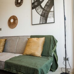– **Living Area**: Bright and inviting, featuring a plush sofa that doubles as a bed, ideal for an extra guest.