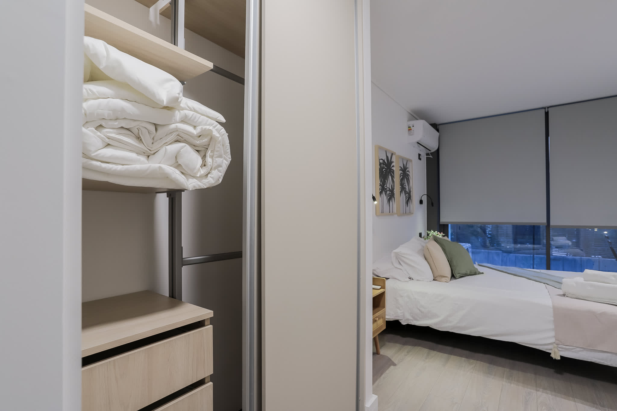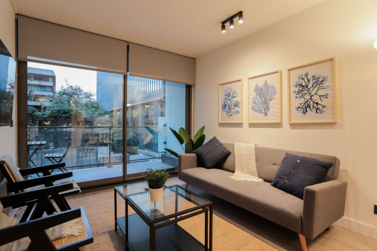 Step into your own Santiago story in this comfortable 1-bedroom apartment in the heart of Las Condes. Imagine relaxing in a space where modern design meets cozy comfort – your peaceful spot after a day of exploring Chile. With the lovely Parque Araucano practically right outside your door, both calm and excitement are within easy reach. Experience Santiago like a local. Your city getaway is waiting for you.