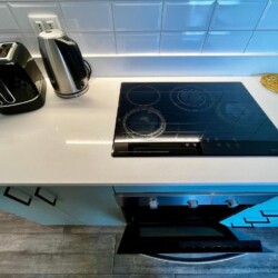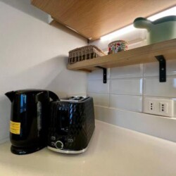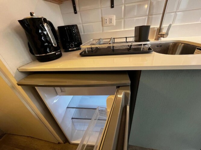 – **Bathroom**: Refresh in the sleek bathroom, complete with hot water and a hair dryer for your grooming needs.