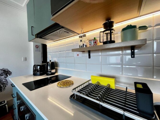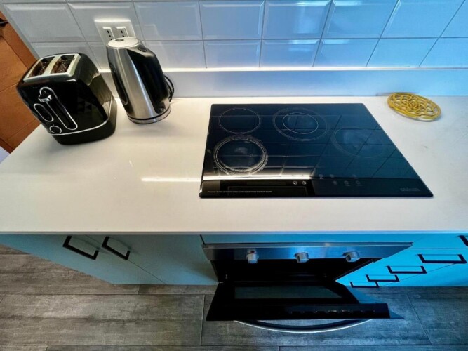 – **Dining**: Savor your culinary creations with elegant wine glasses at the intimate dining nook.