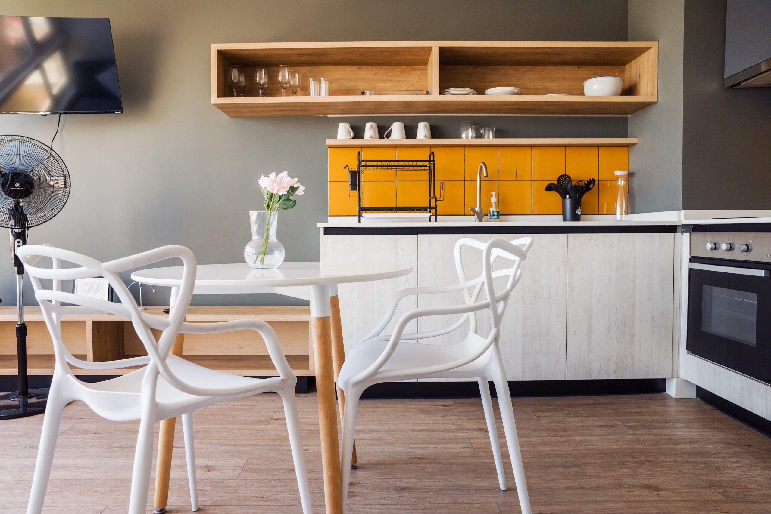 – **Living Room:** Relax on the comfortable sofa, which converts into a bed for an additional guest.