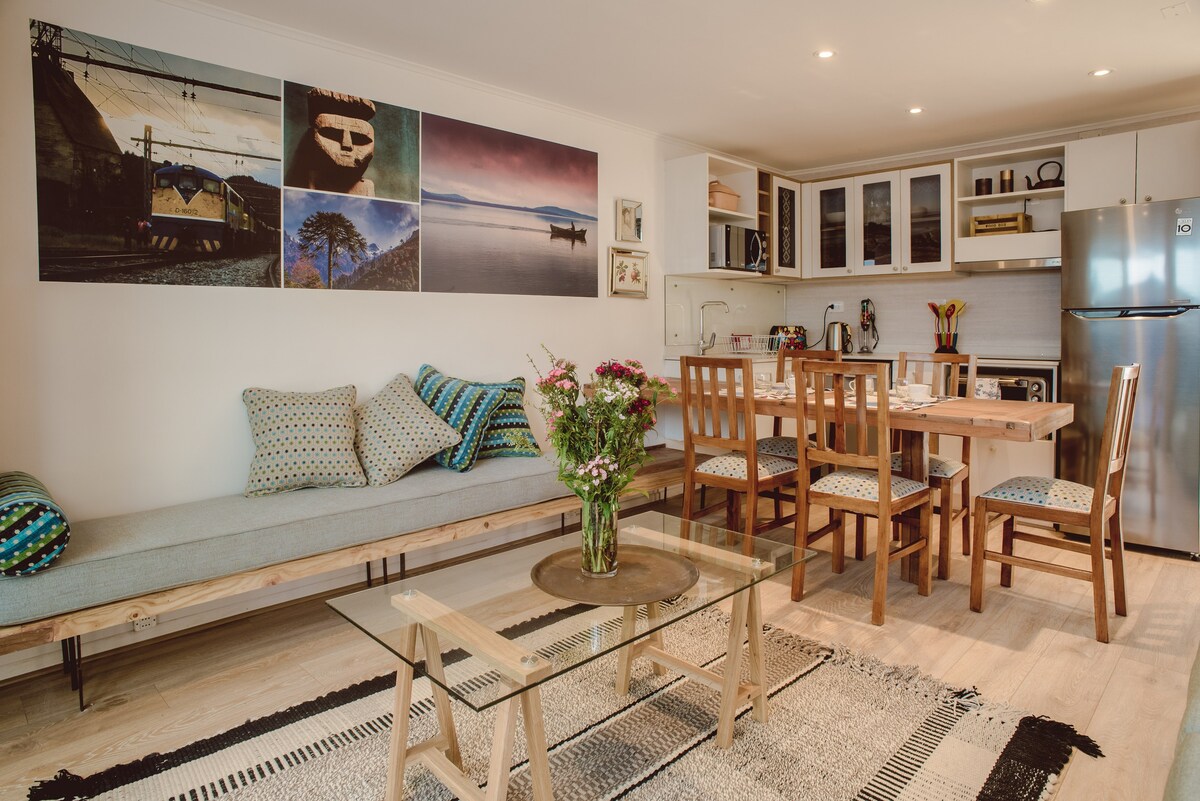 Discover a chic urban retreat in the heart of Providencia! This two-level, 2-bedroom, 2-bath apartment blends avant-garde design with comfort, perfect for up to 4 guests. Relax in spacious, sunlit living areas equipped with essentials like air conditioning, cable TV, and a modern kitchen featuring a coffee maker and dishwasher. Nestled near Cerro San CristΓ³bal and the Metropolitan Park, adventure and relaxation await just steps away. Explore the vibrant Sculpture Park and shop at Costanera Center. Book your unforgettable Chilean escape today!