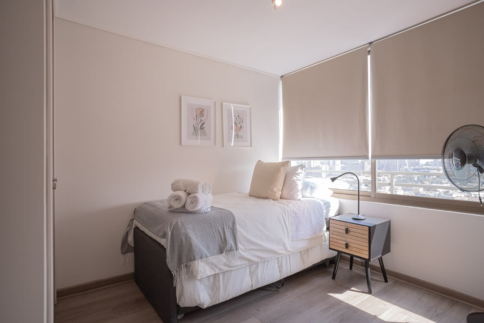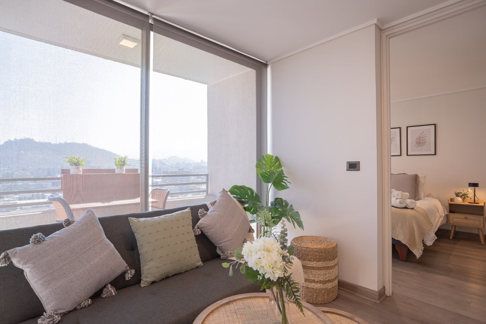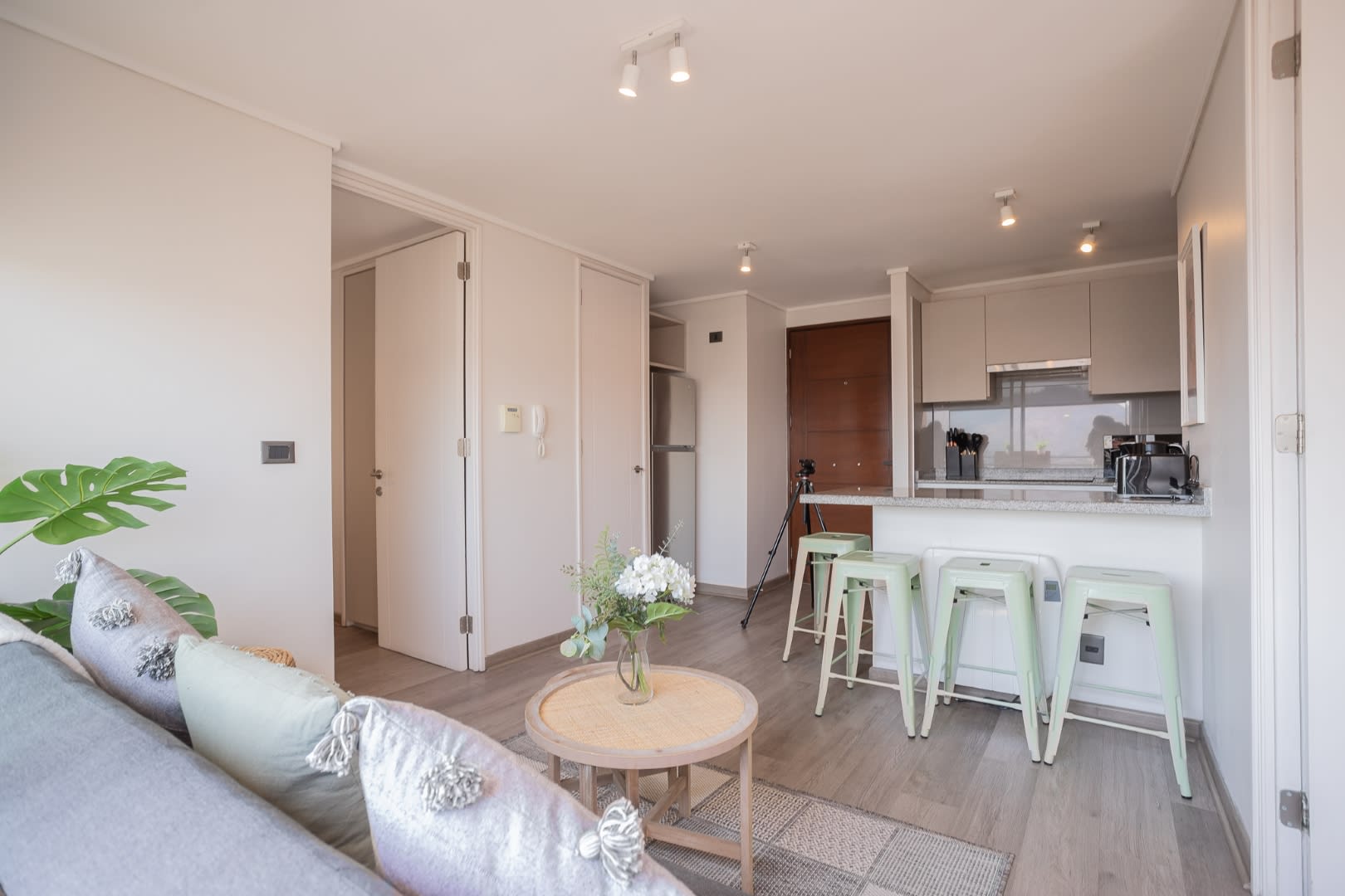 A unique accommodation for a peaceful and relaxing stay in Santiago. During your stay, you can enjoy our seasonal pool, open from December to March. We also have a barbecue area and a multipurpose room, available for an additional cost, as well as a coworking space. Excellent location, just steps from Irarrázabal Metro, close to iconic places like the National Stadium and the vibrant Plaza Ñuñoa, where you can enjoy a variety of dining and cultural options.