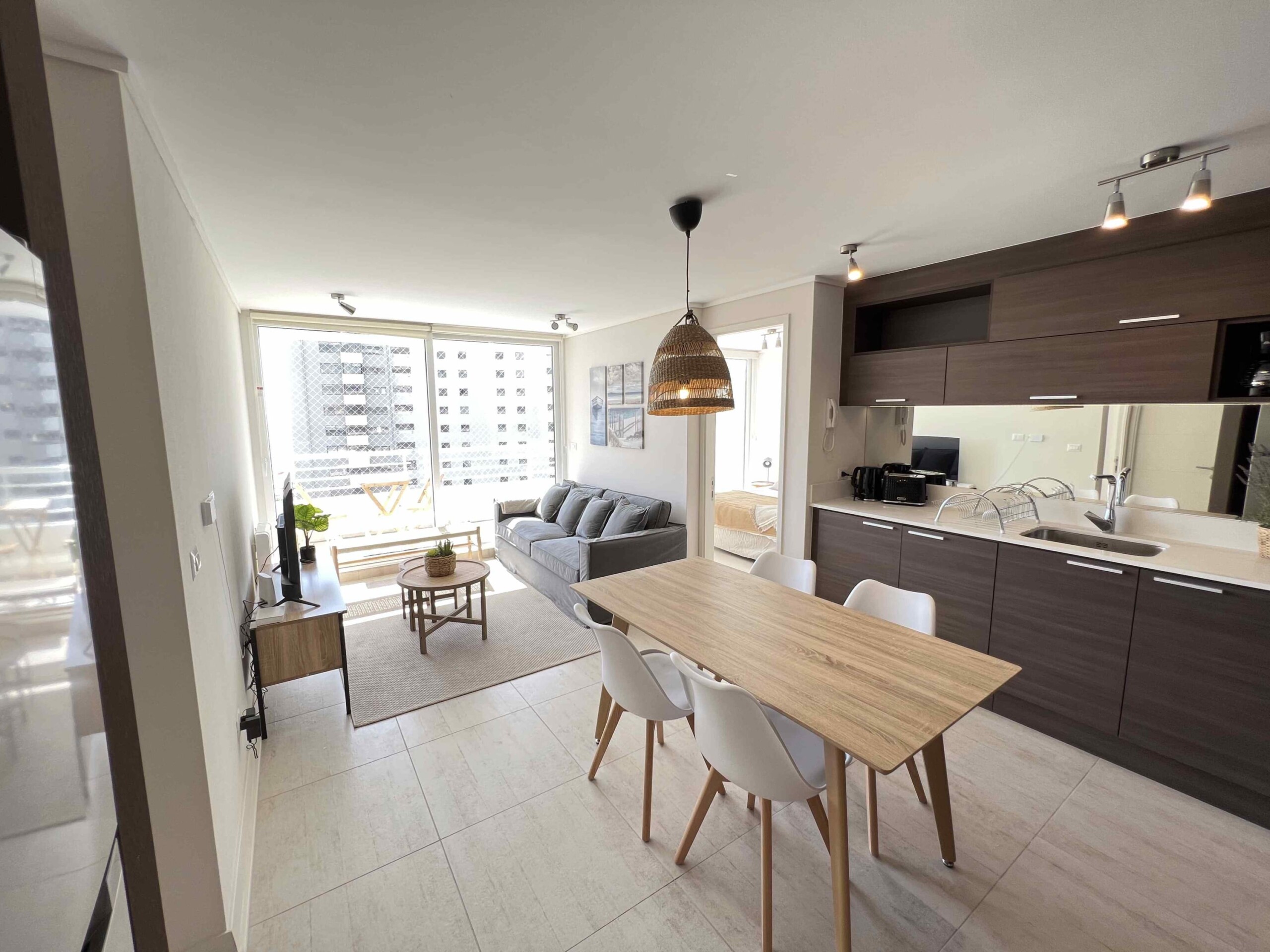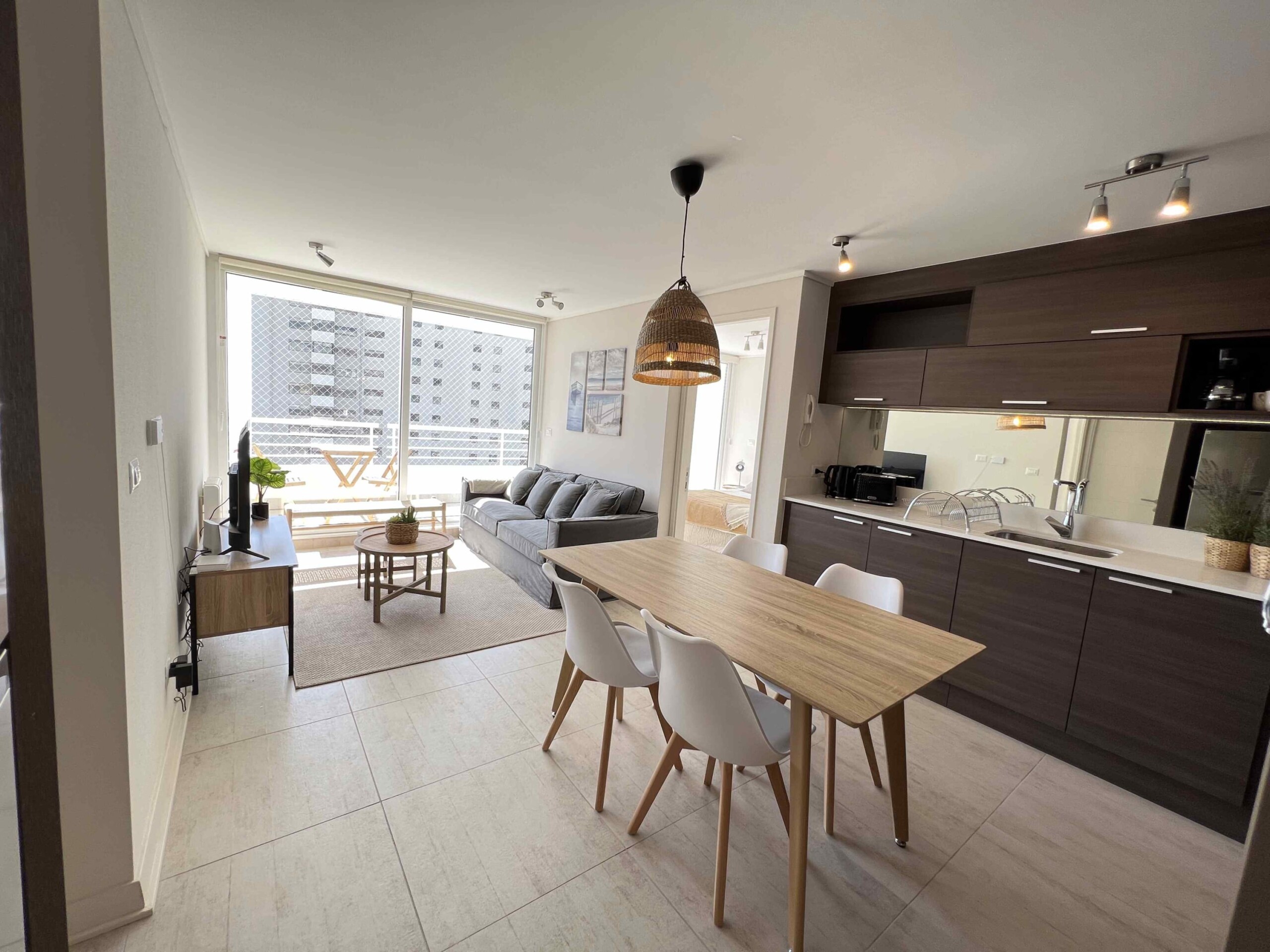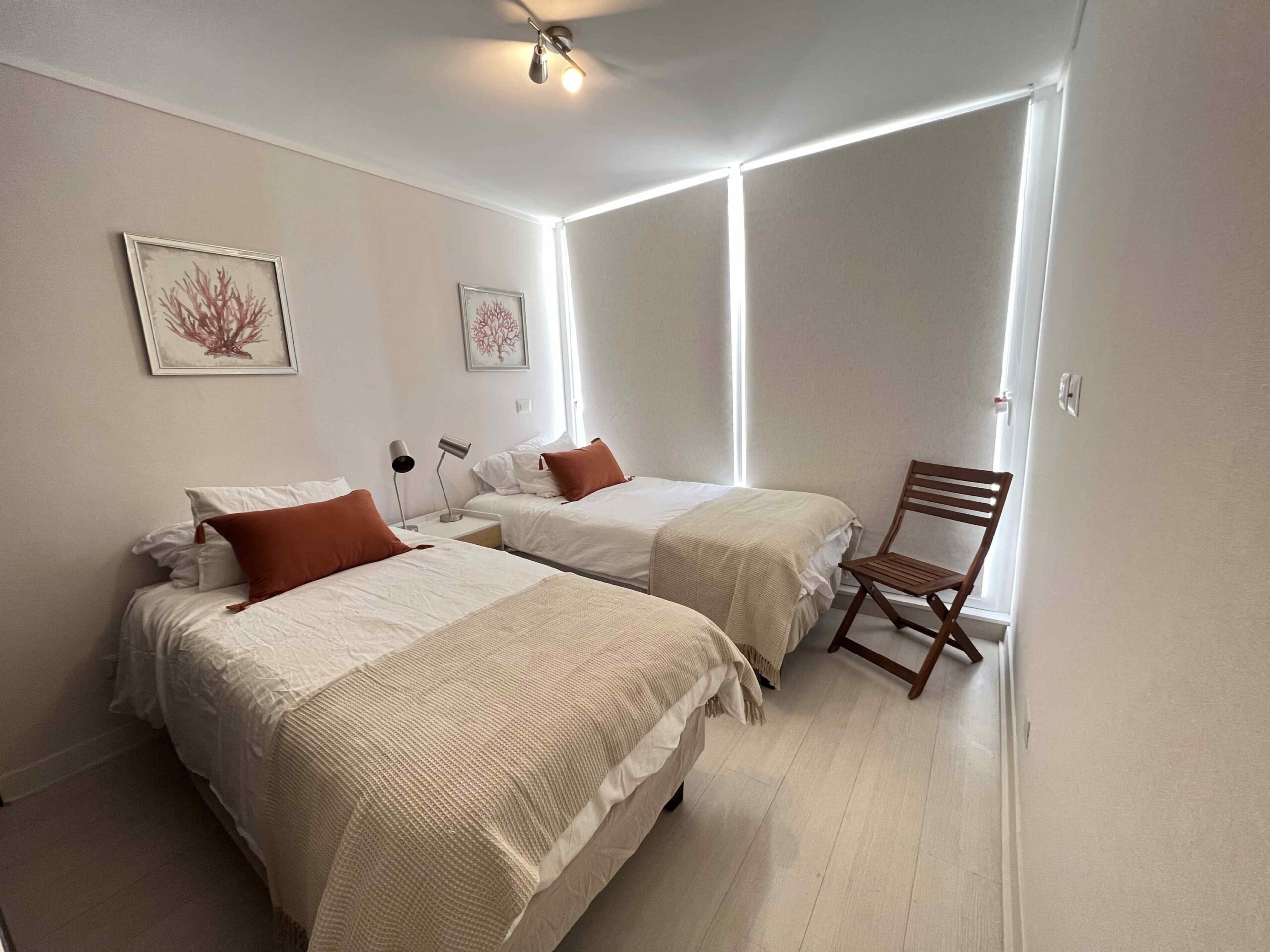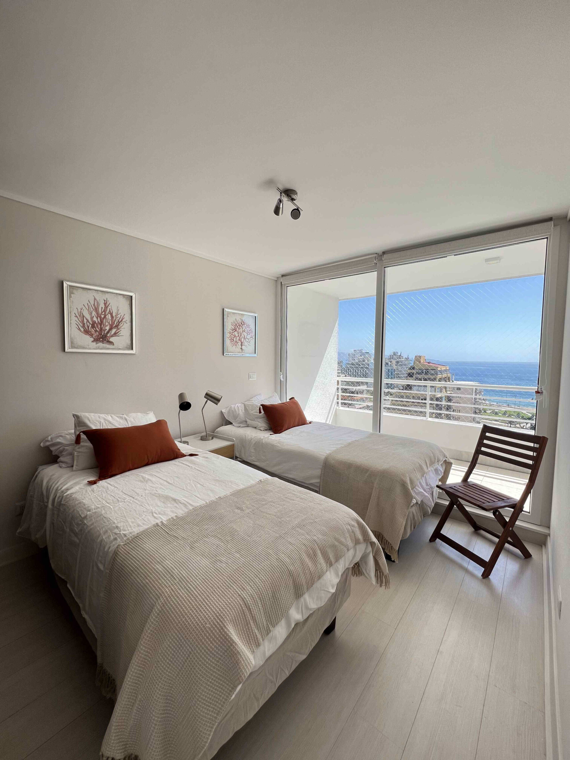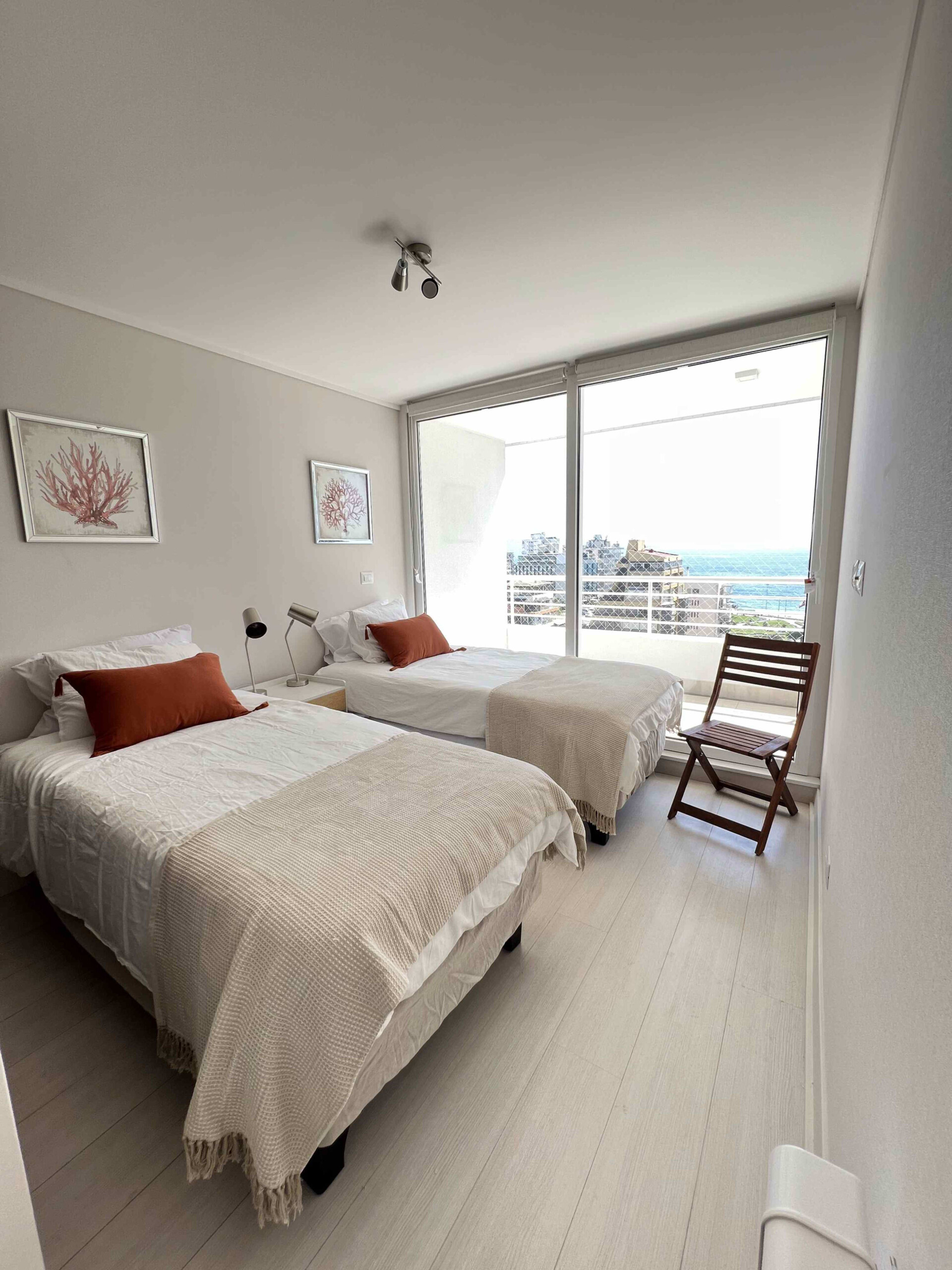 This apartment is ideal for couples, small families, or friends who want to experience the best that Viña del Mar has to offer. It features a comfortable and bright suite with a double bed, two single beds in the second bedroom, a fully equipped kitchen where you can prepare your favorite meals, and two clean, modern bathrooms with fresh towels. We also offer WiFi and a Smart TV for your entertainment.