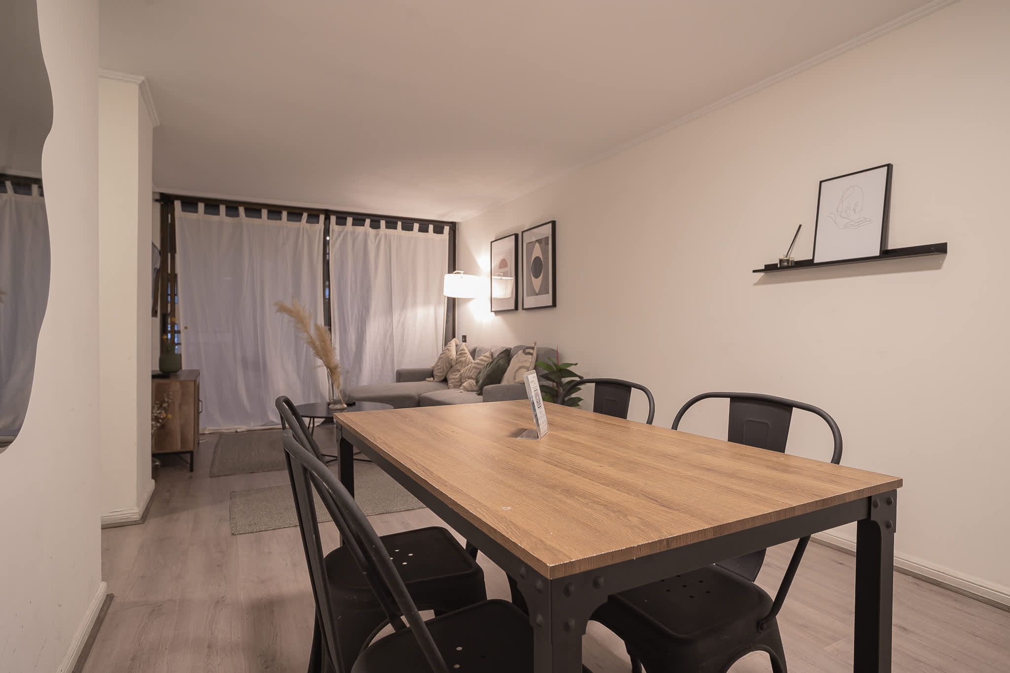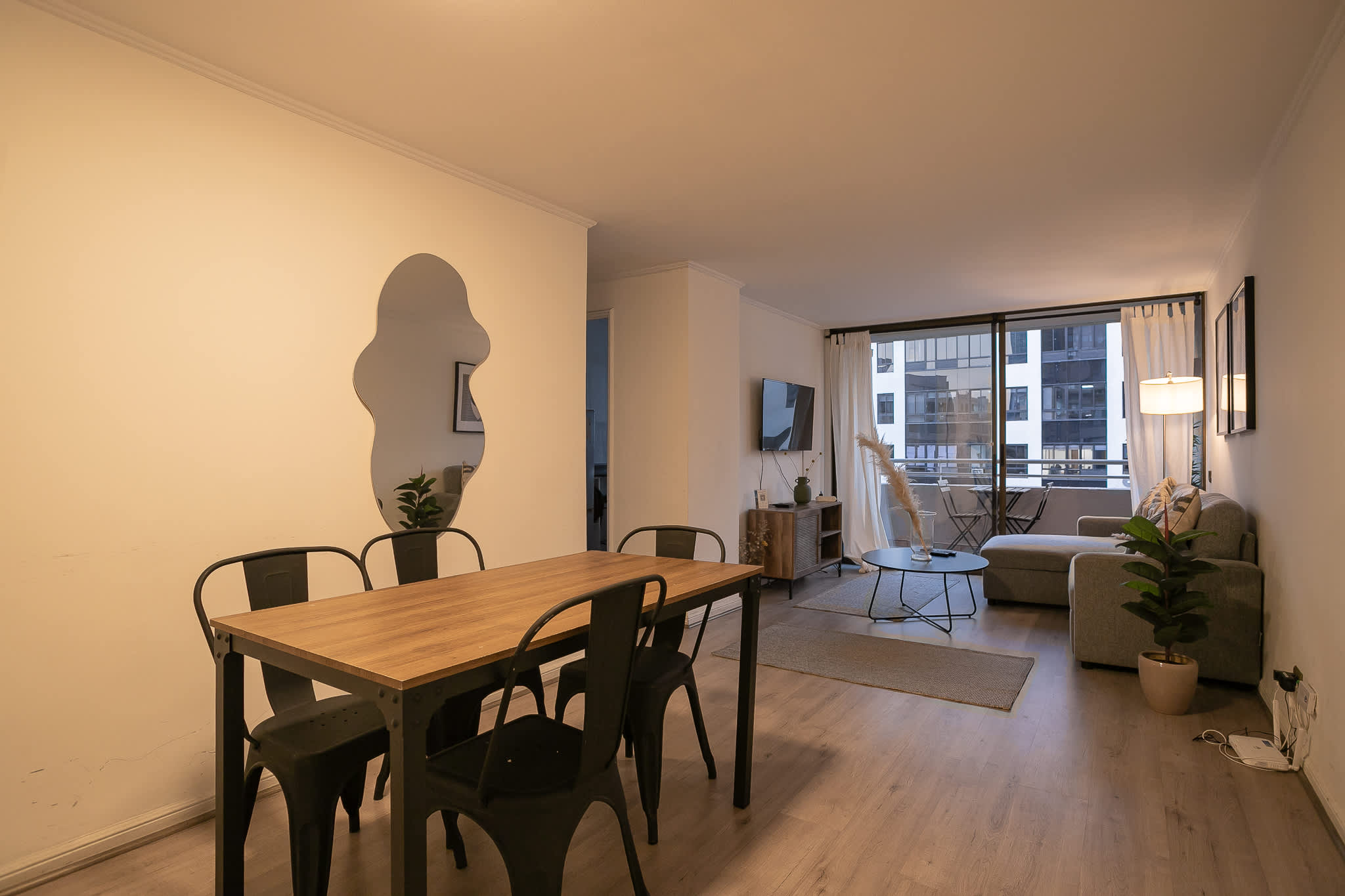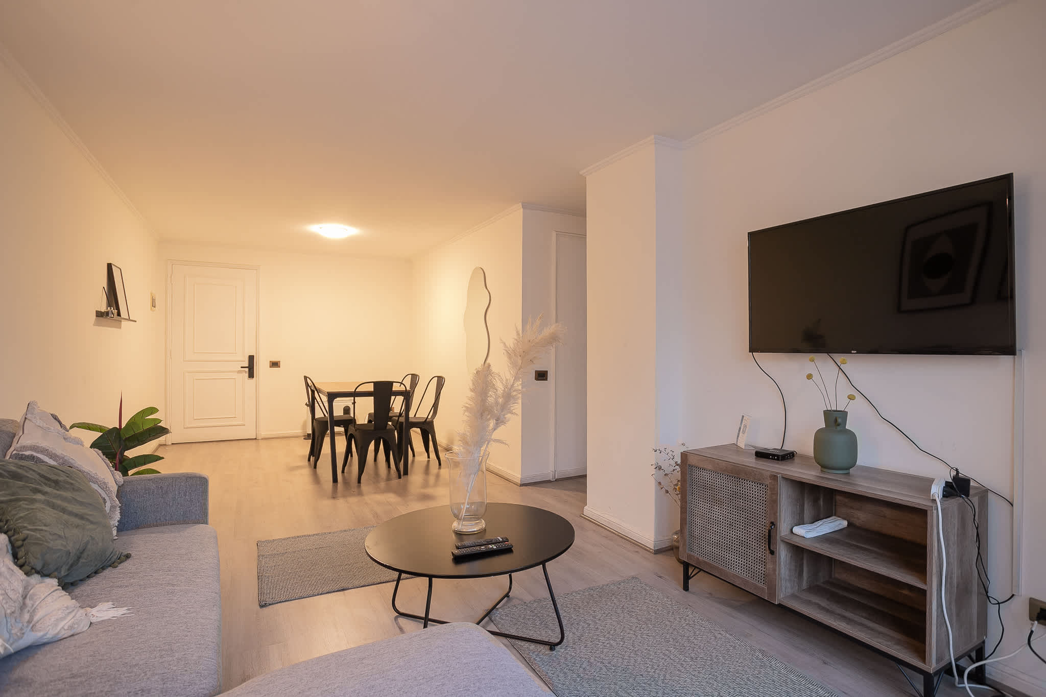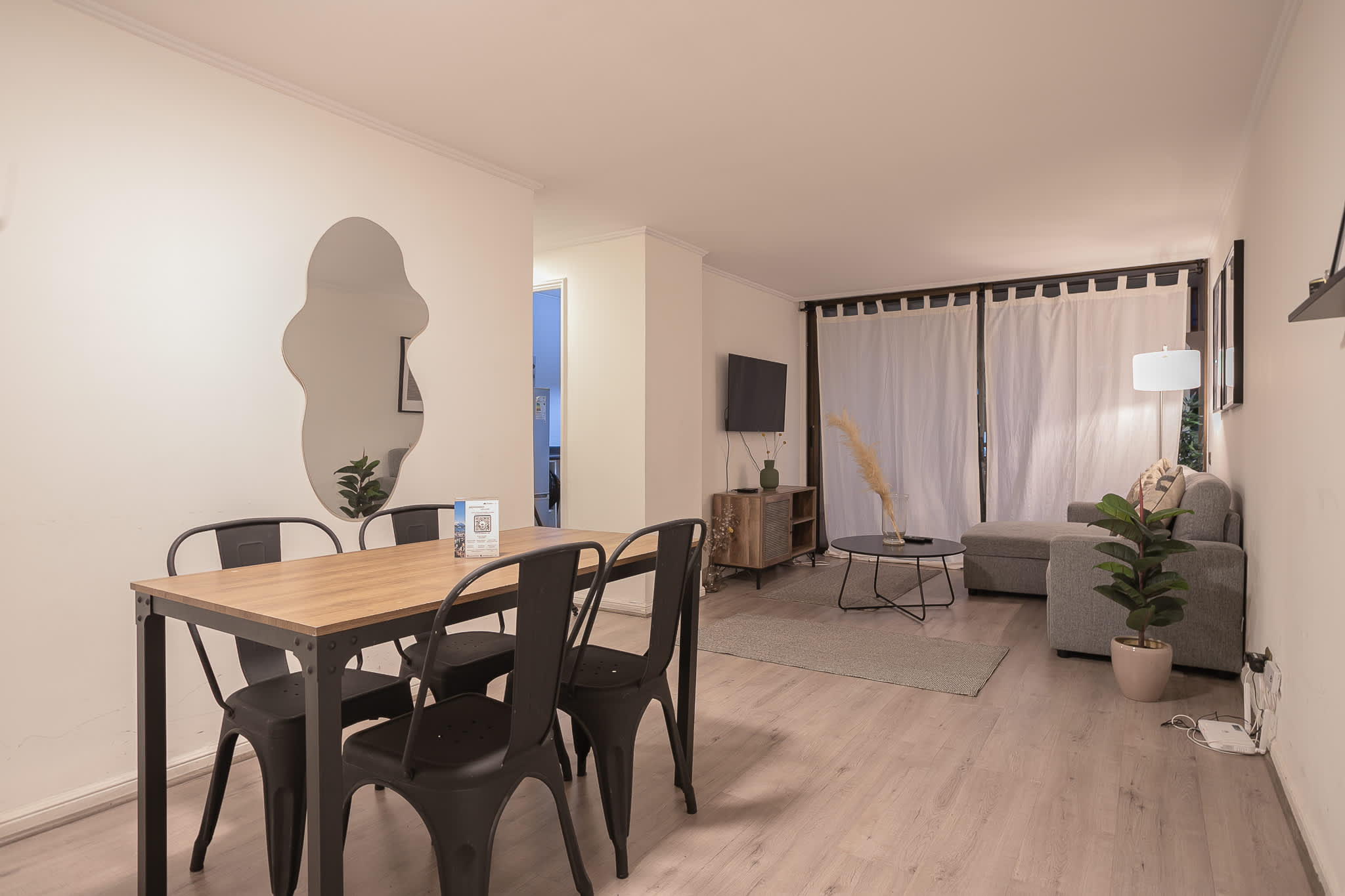 Step into a modern oasis in Las Condes, where style meets comfort. This 2-bedroom, 2-bathroom apartment offers a seamless flow from room to room, ensuring a relaxing stay for up to four guests. Key features include: