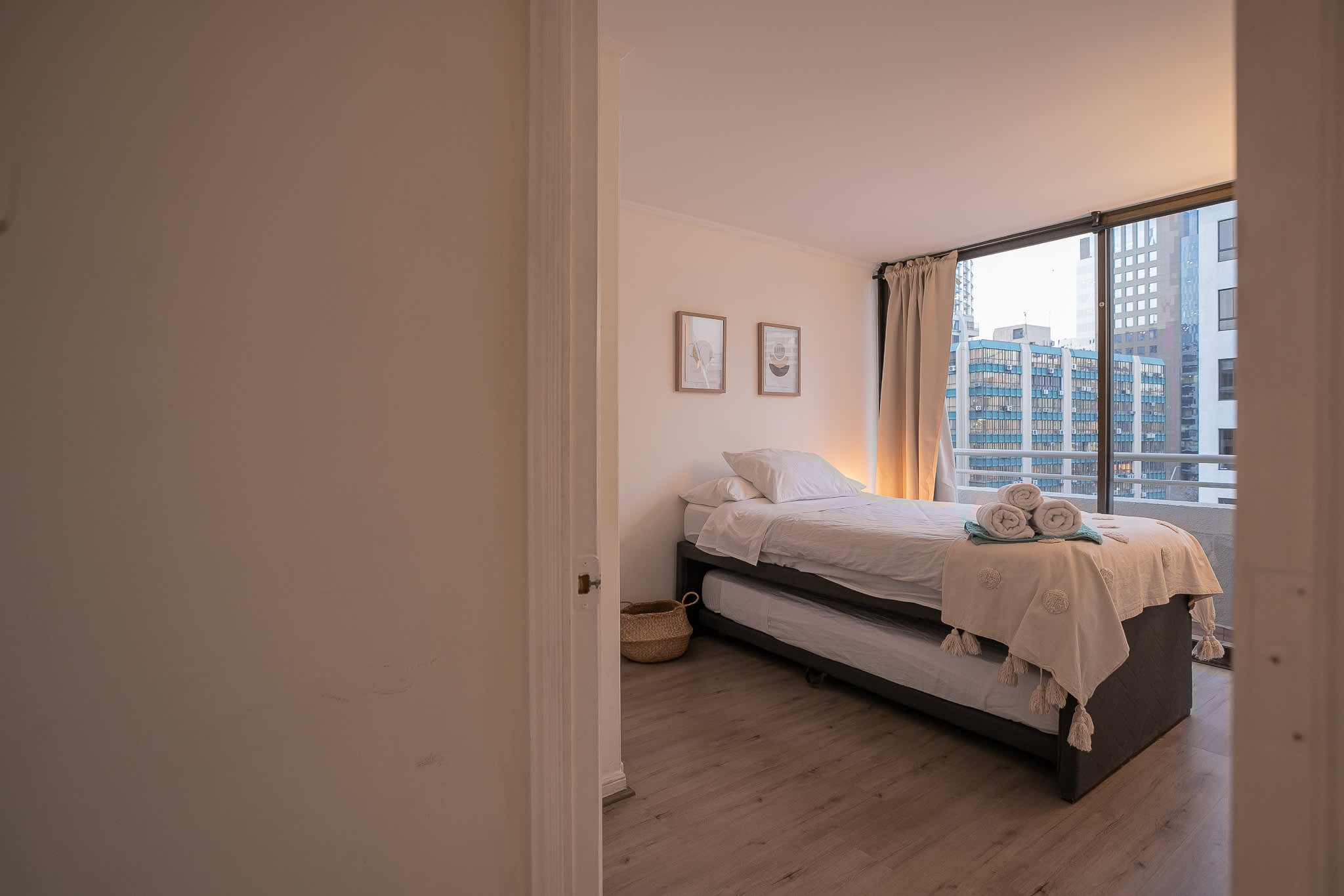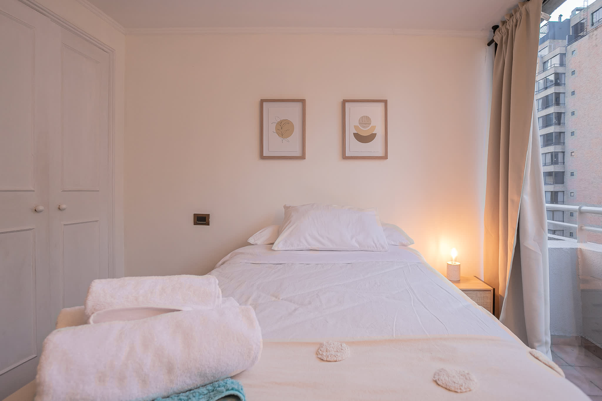 Welcome to your chic urban retreat in Las Condes! Our stylish 2-bedroom, 2-bathroom apartment comfortably accommodates up to 4 guests, offering a perfect blend of comfort and accessibility. Delight in modern amenities, including cozy linens, and a well-equipped kitchen with dishes, silverware, and a coffee maker. Relax in the communal pool or enjoy the convenience of an elevator and doorman. Ideally situated near Mall Alto Las Condes and Mercado Urbano Tobalaba, you’ll find shopping and local culture at your doorstep. Book your Santiago getaway today and experience the vibrancy of Las Condes!