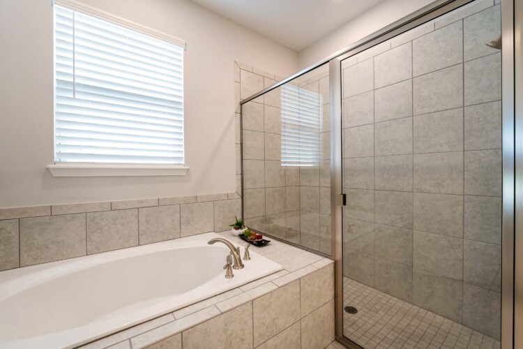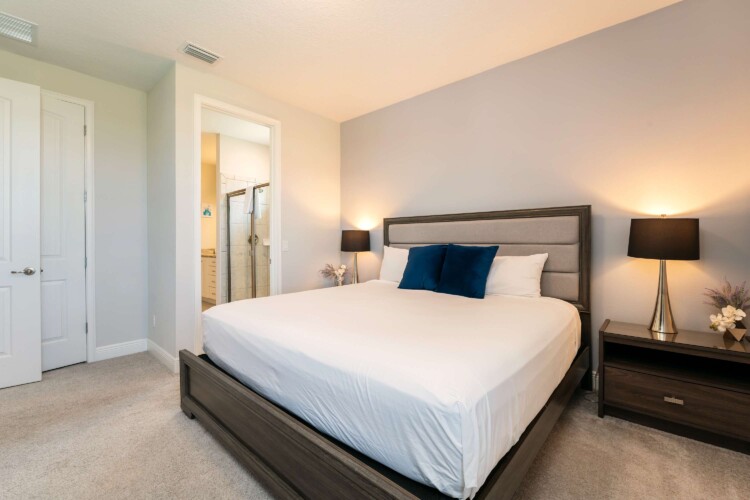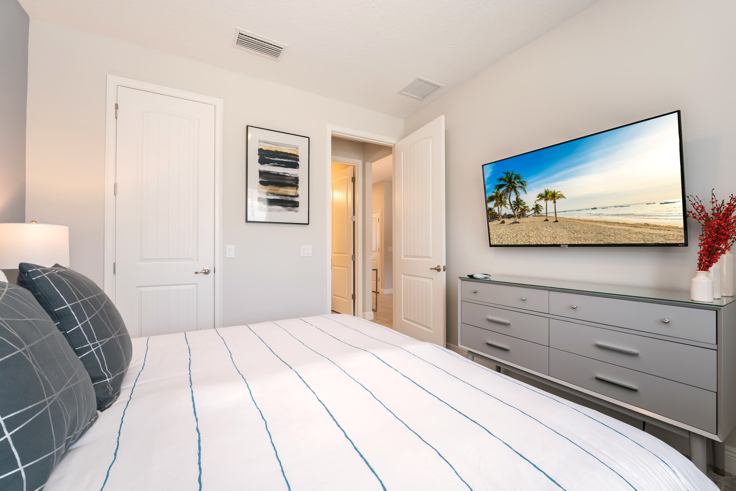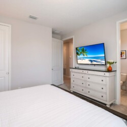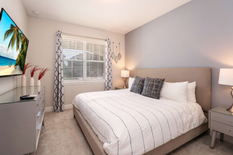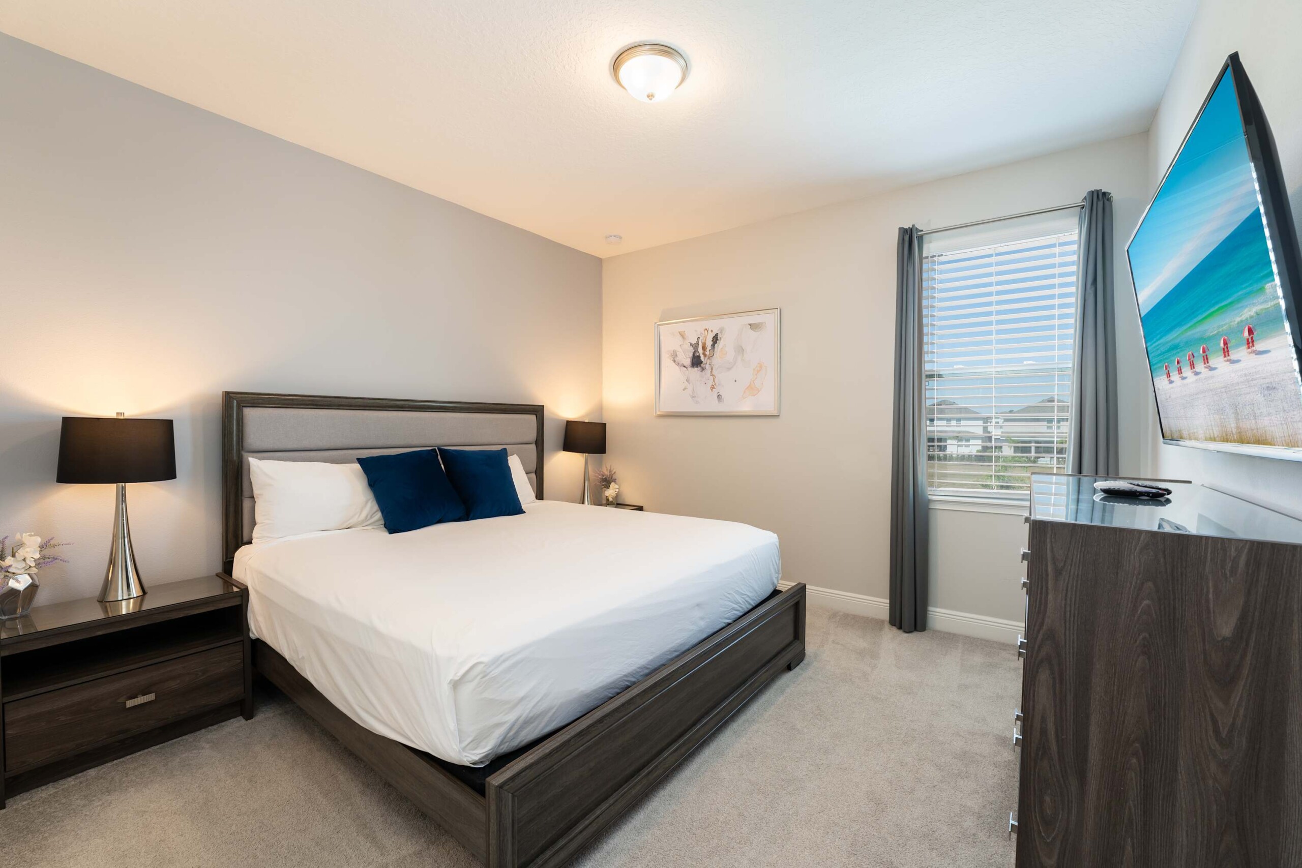 Bedroom 2 – Master, king bed, 55” TV, bathroom with tub and shower