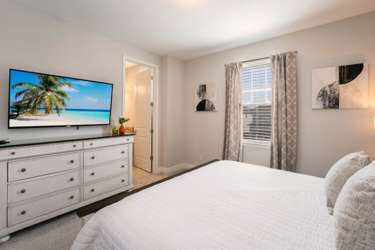 Bedroom 6 – King bed, 55″ TV, attached to Jack & Jill bathroom